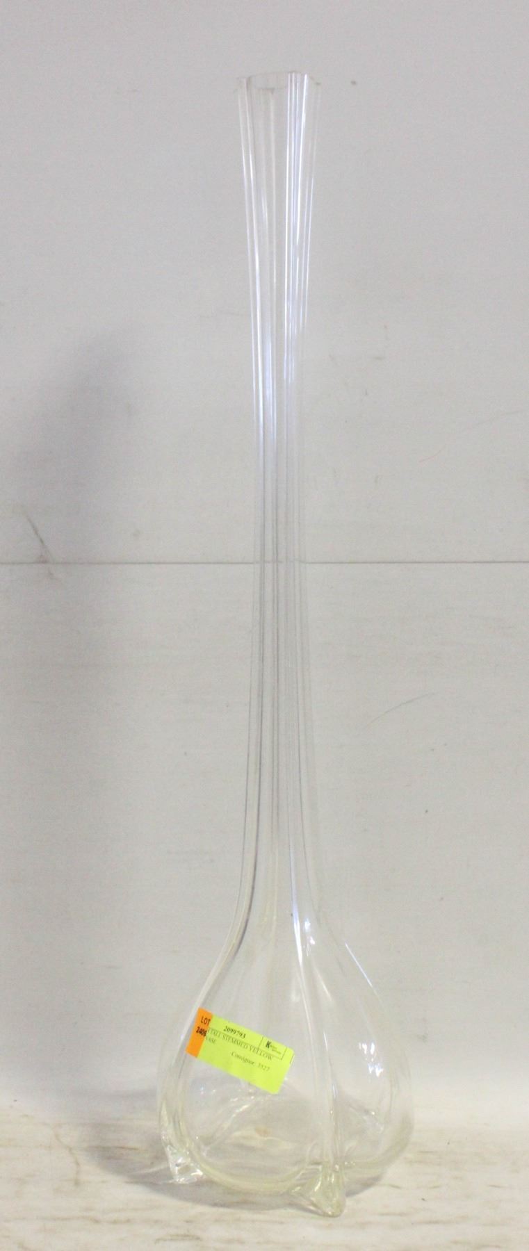 24 INCH TALL STEMMED YELLOW GLASS VASE