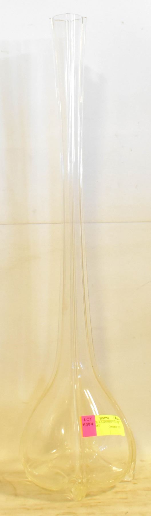 24 INCH TALL STEMMED YELLOW GLASS VASE