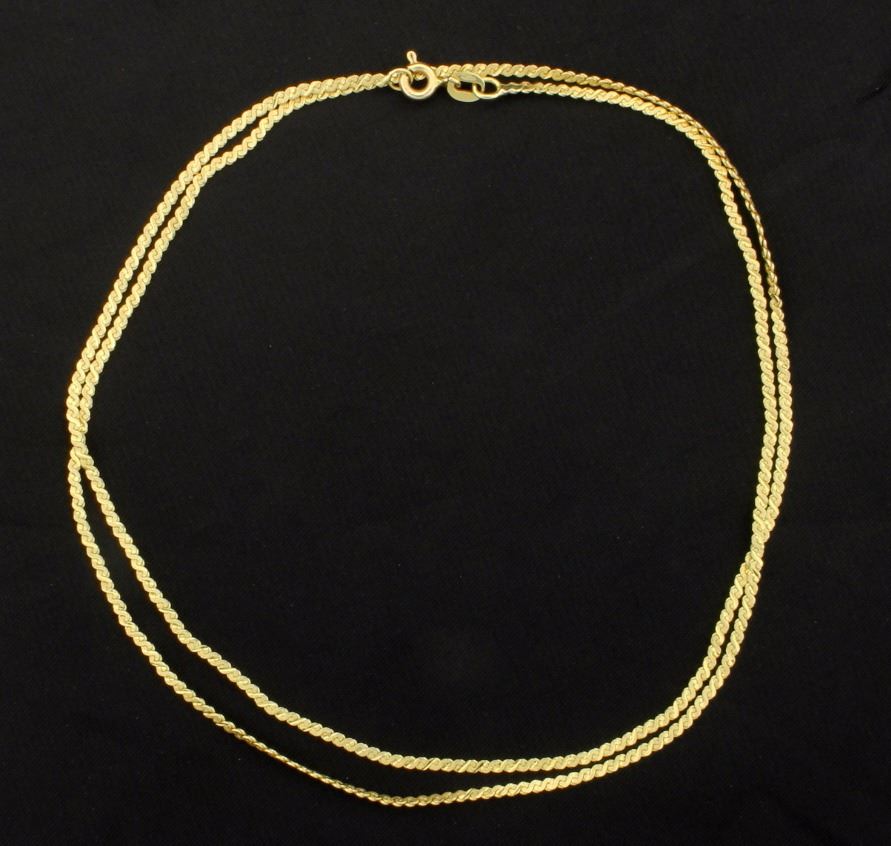 14K yellow gold, it is 1.7mm wide. 6.4g