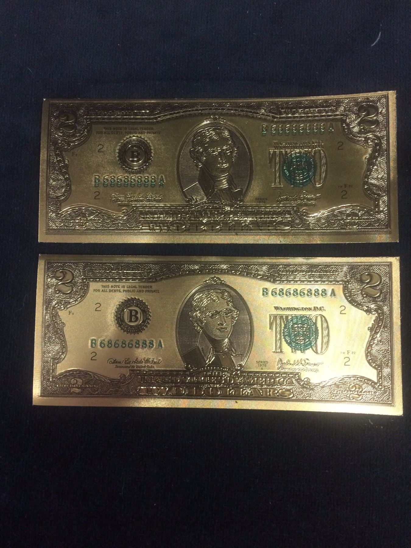 24 KARAT GOLD FOILED TWO DOLLAR USA BANKNOTES