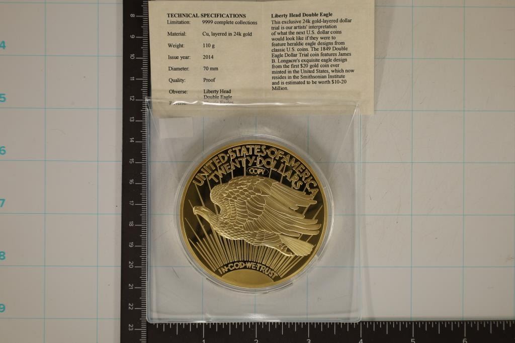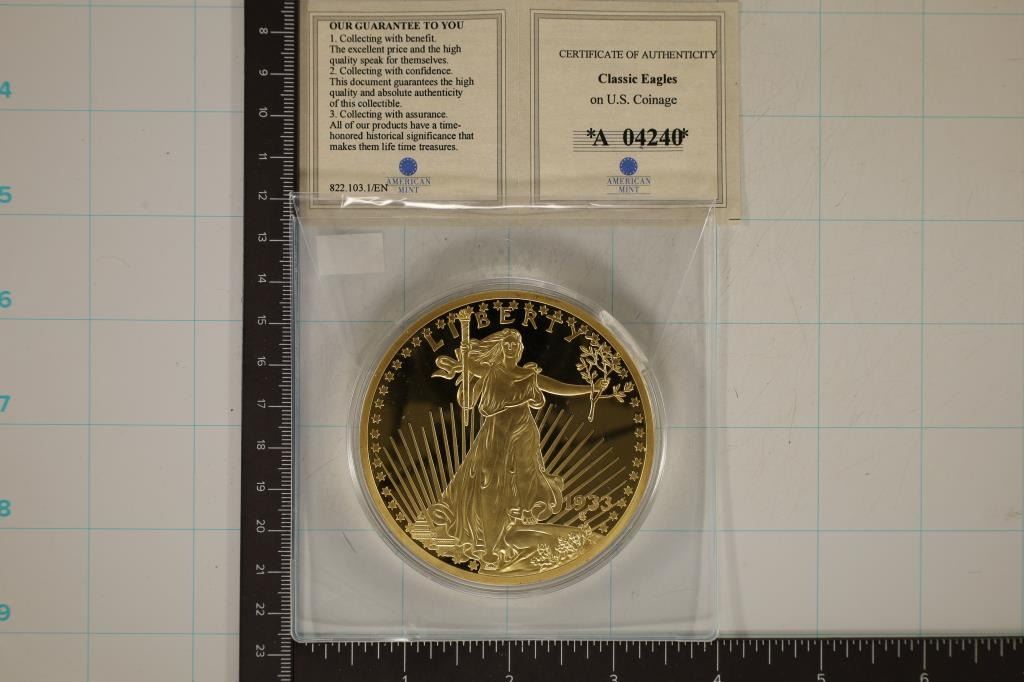 REPLICA COLLECTORS PROOF ROUND. 70MM DIAMETER AND 110 GRAMS IN HARD PLASTIC CAPSULE WITH CERT BY THE AMERICAN MINT