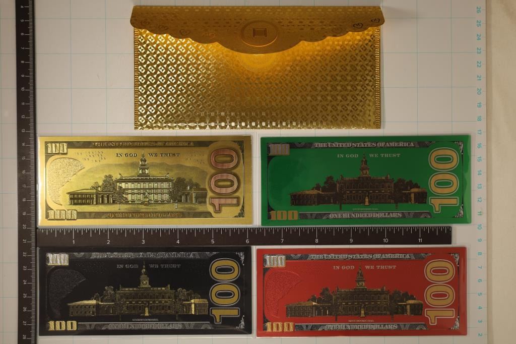 BILLS IN 24 KT GOLD FOIL ENVELOPE. CRISP UNC