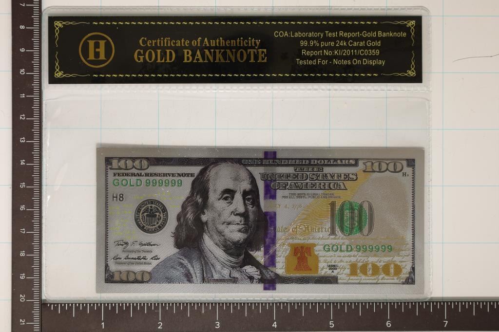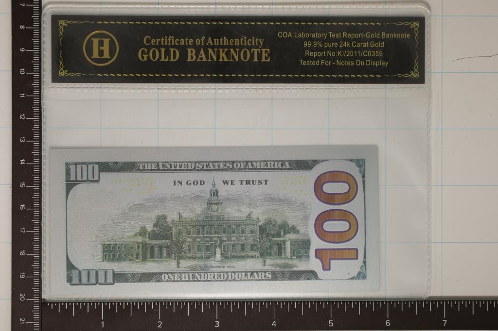 IN CERTIFICATE OF AUTHENTICITY GOLD BANK NOTE SLEEVE