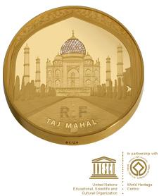 In partnership with the UNESCO World Heritage Centre, Paris Mint (French Government owned) is offering a 100,000€ (Euro one hundred thousand) coin set with diamonds in the image of the Taj Mahal, a UNESCO World Heritage site.