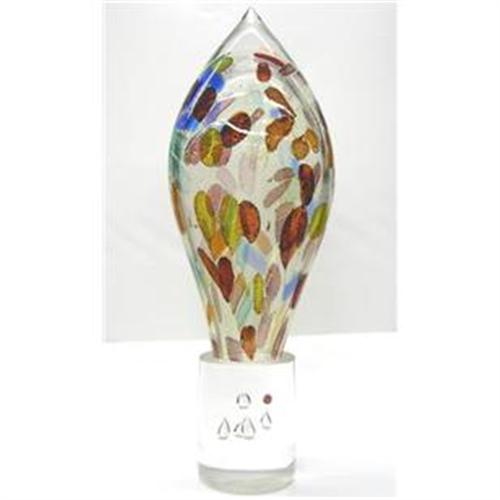 This monumental 24" tall Murano glass figurine is truly unique. Modified teardrop shape in clear blown glass with numerous multi-colored murrines.