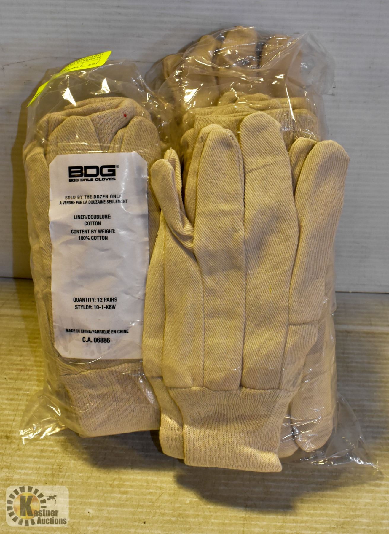 24 PAIRS OF 100% COTTON WORK GLOVES SIZE LARGE