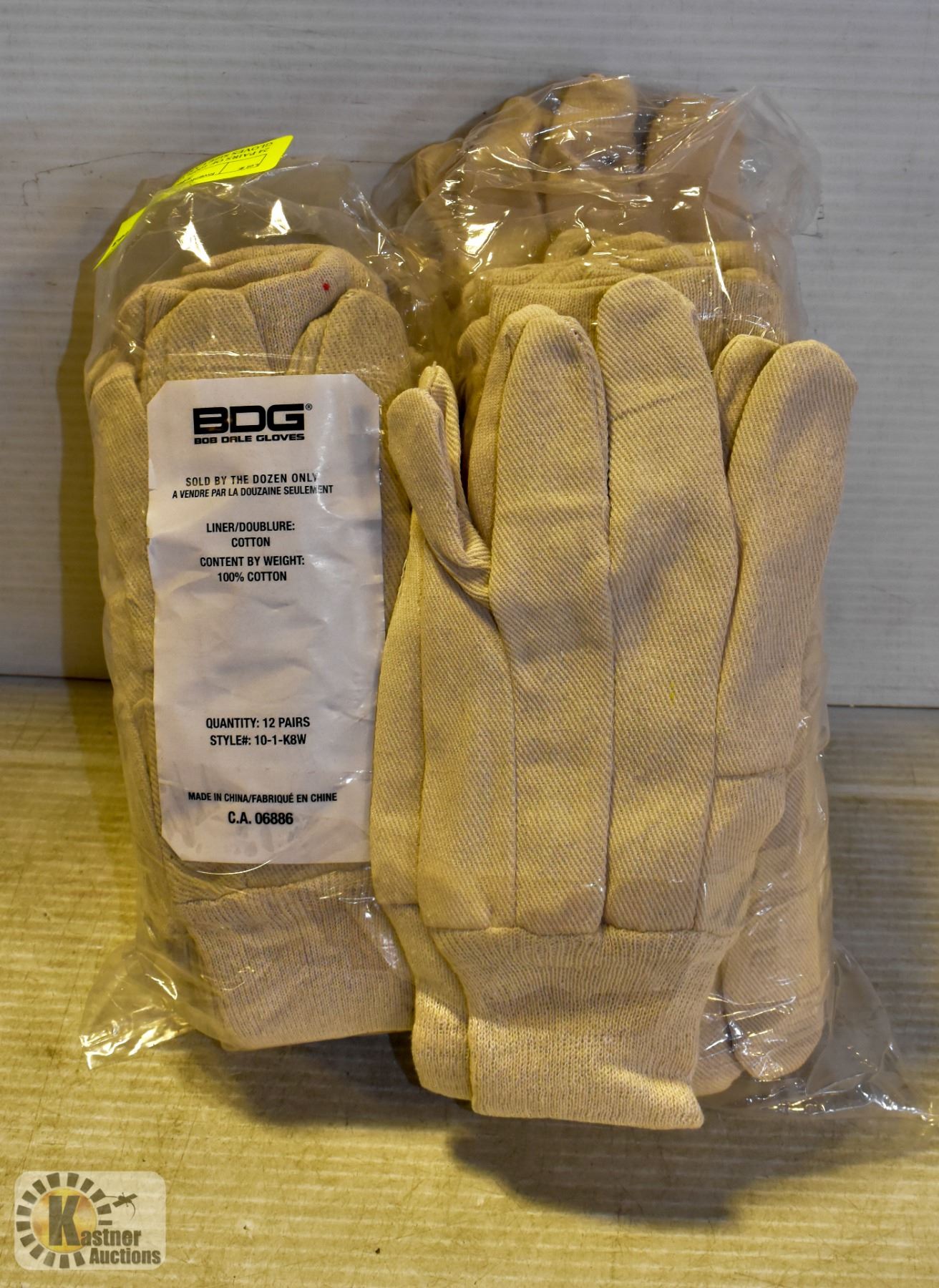 24 PAIRS OF 100% COTTON WORK GLOVES SIZE LARGE