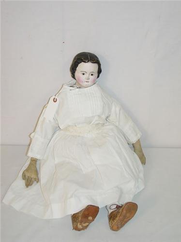 24" PAPIER MACHE DOLL-HEAD and SHOULDERS W/ CLOTH BODY - MARKED M and S SUPERIOR #2013, STICKER ON BACK SHOULDER, LOSSES and REPAIRS