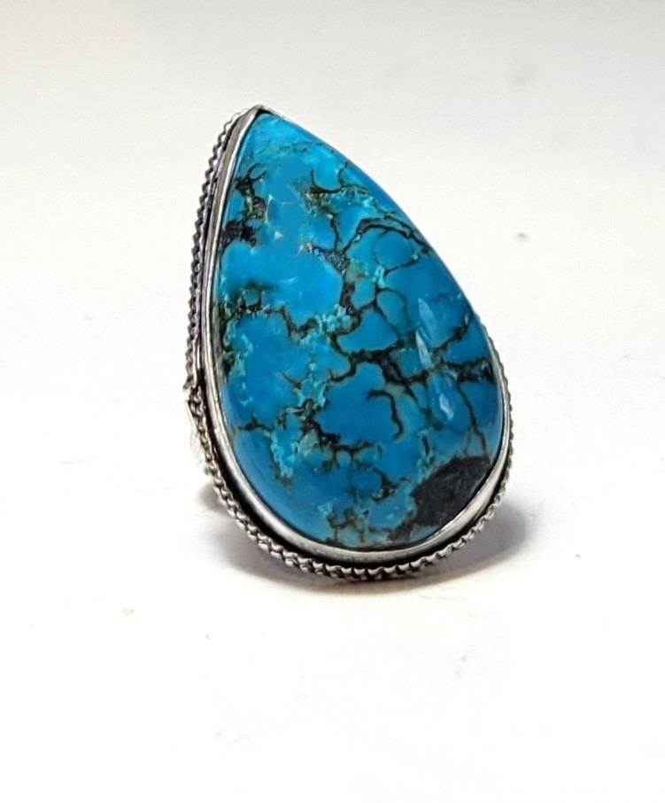 24) PEAR SHAPED SIZE 6 TURQUOISE RING,