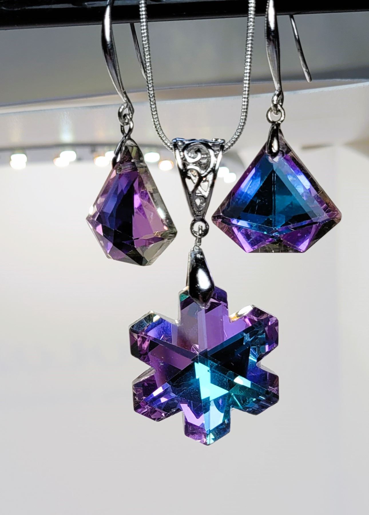 FLAKE PENDANT WITH COORDINATING DROP EARRINGS ON NICKEL FREE WIRES, PENDANT ON 18" SNAKE CHAIN. JEWELRY