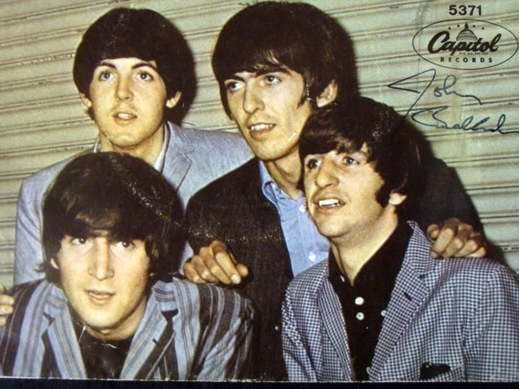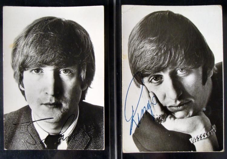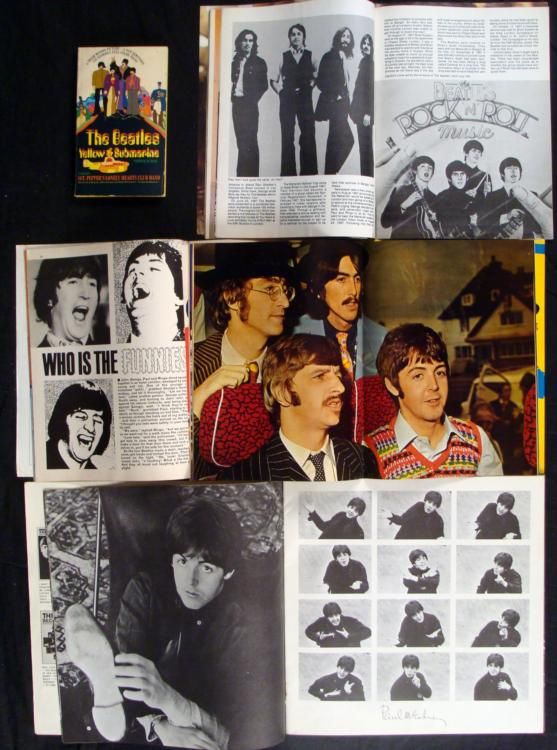 This is a big 24 piece collection of original Beatles items and memorabilia. They range from good to mint condition. * There are some rare items to be found amongst these, and here they are: * * Signed photos: * * John Lennon, in black ink, picture cut from a fan club sheet, 2 x 3 inchesRingo, in blue ink, picture cut from a fan club sheet, 2 x 3 inches * Photos: * * Set of four from the White Album, 7 3/4 x 10 3/4 inches * Records: * * Pantomime "Everywhere It's Chistmas 6" 33 1/3 record in sleeve produced in 1966 by The Beatles Fan Club of Great BritainRegular 45'sA Hard Day's Night (Apple, picture sleeve)A Hard Day's Night (U.A.) D.J. copyHelp! DJ CopyTicket to Ride and You've got to Hide Your Love Away from The Baroque Beatles Book, Radio Station copyBack Off Boogaloo, Apple 1849Sleeves onlyHappy Just to Dance with You 5234Eight Days a Week 5371 (signed by John someone, not known)Yellow Submarine 5715Yes it Is 5407AlbumsA Hard Day's Night UAL 3366Help! 2386 (sleeve only, no disc)Revolver T 2576Magical Mystery Tour (sleeve only, no disc)(U.S.A.) Ltd. Yearbook, published in 1965 by the Official Beatles National Fan Club; 12 x 12 inches, 28 pagesPublications: * Yellow Submarine Book, First Edition, softcoverRave, January 1966WCFL Teen Set, March 1968John Lennon Tribute collector's issue 1980This is fab instant collection for the true Beatles fan! * *