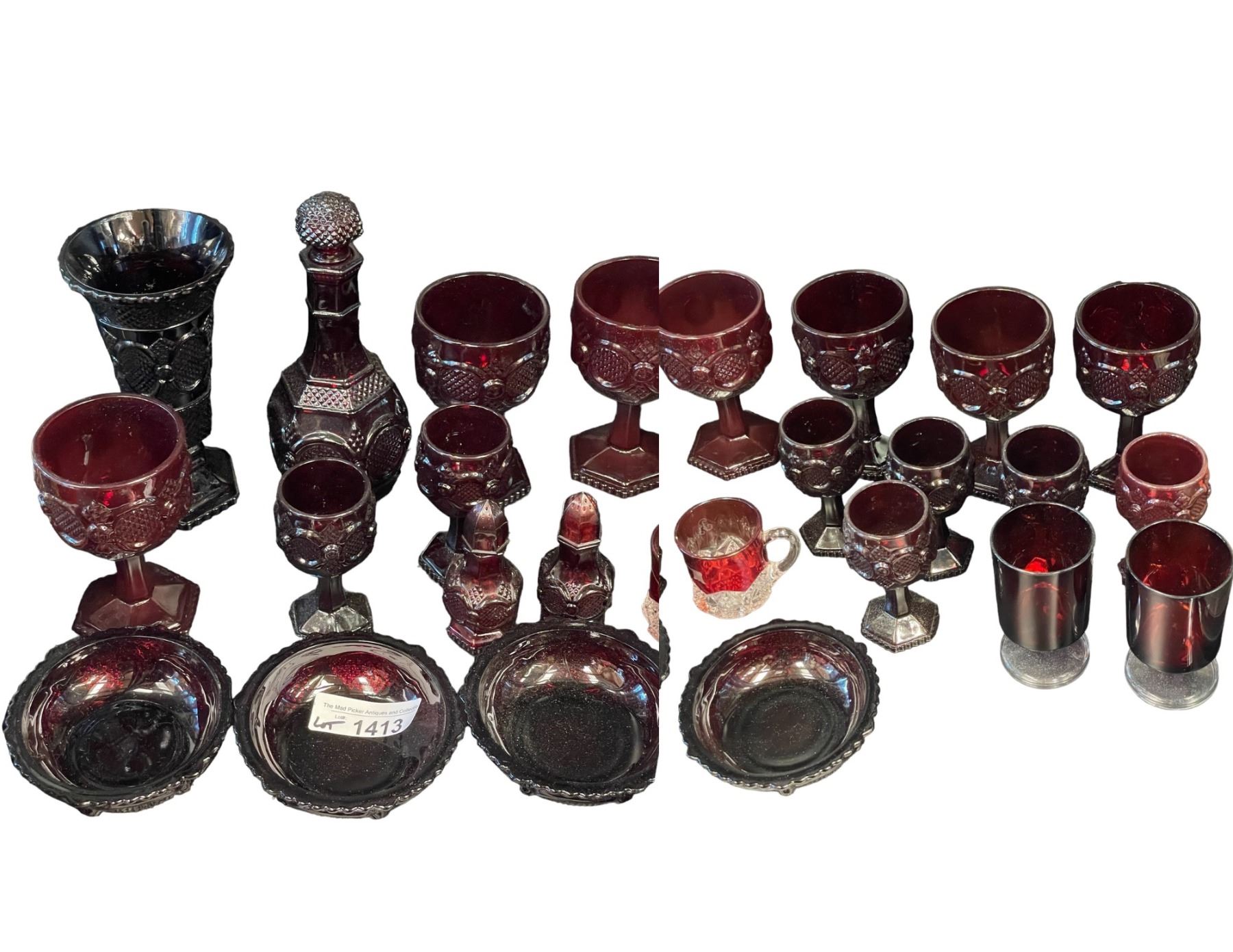 24 Piece Ruby Glass Avon Cape Cod Collection
