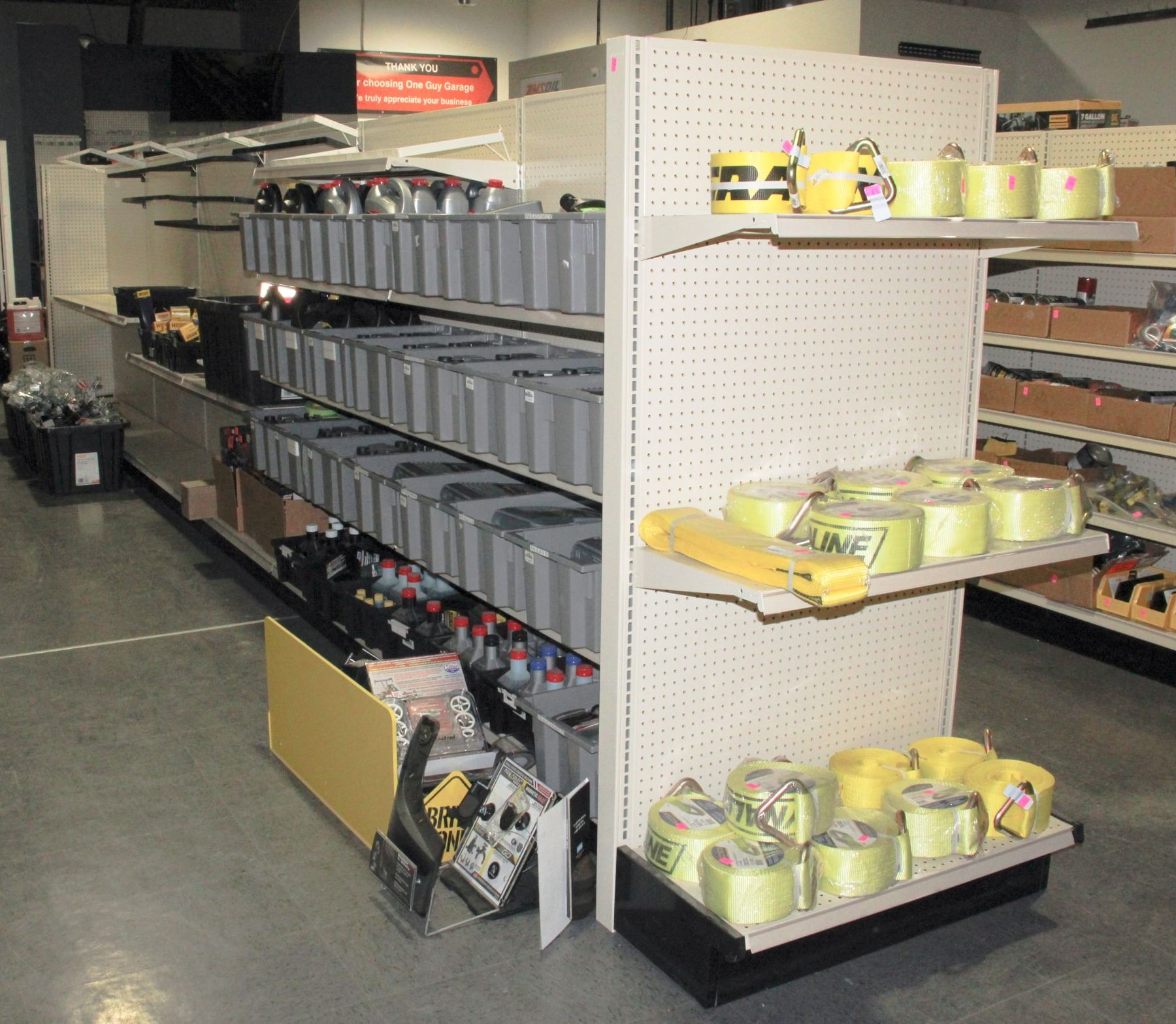 INCLUDES SHELVING SHOWN IN PICTURE. NO OTHER CONTENTS INCLUDED. DOUBLE ENDCAP SET UP ADS EXTRA SIZE NOT INCLUDED IN 24' MEASUREMENT