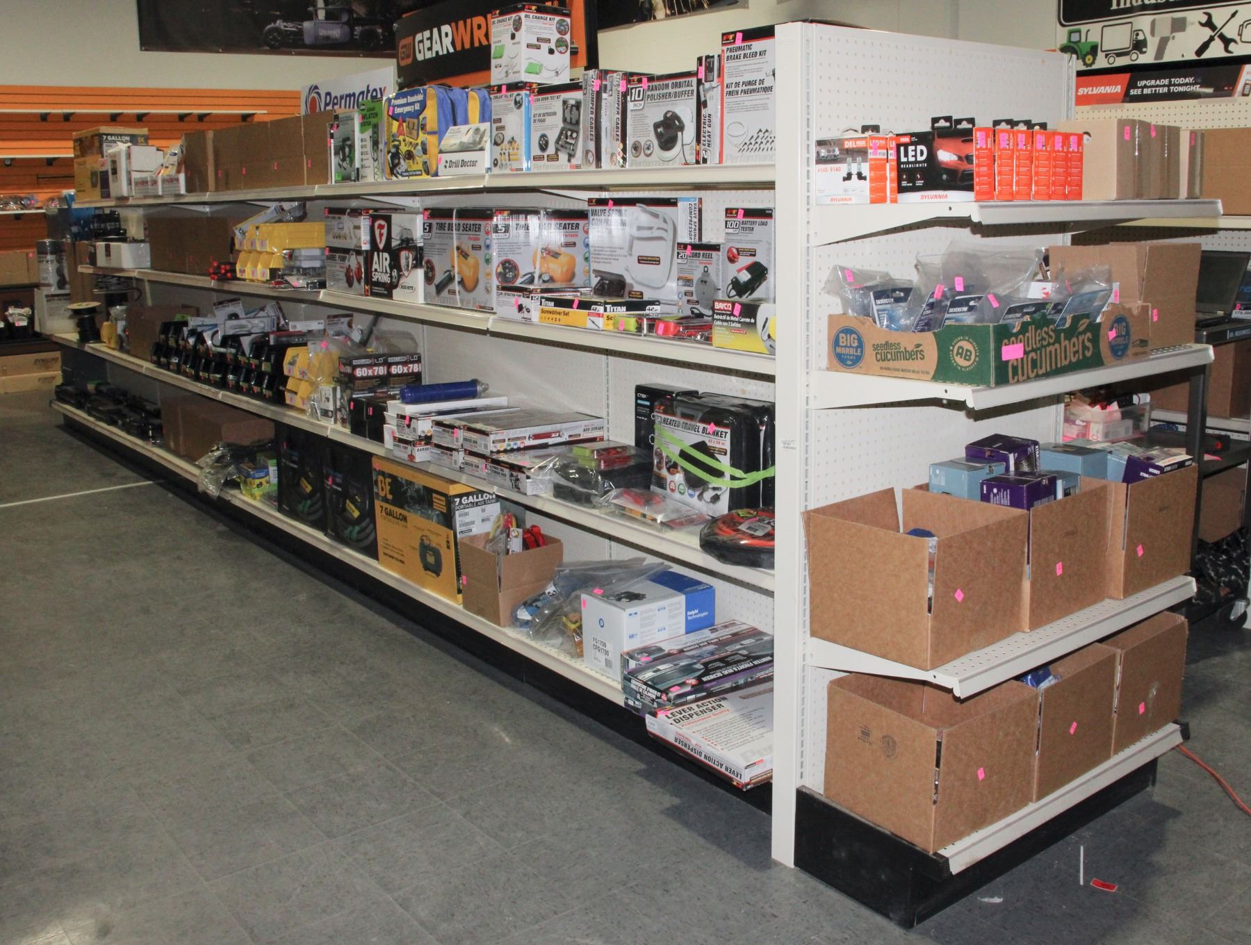 INCLUDES SHELVING SHOWN IN PICTURE. SINGLE ENDCAP SET UP ADS EXTRA SIZE NOT INCLUDED IN 24' MEASUREMENT