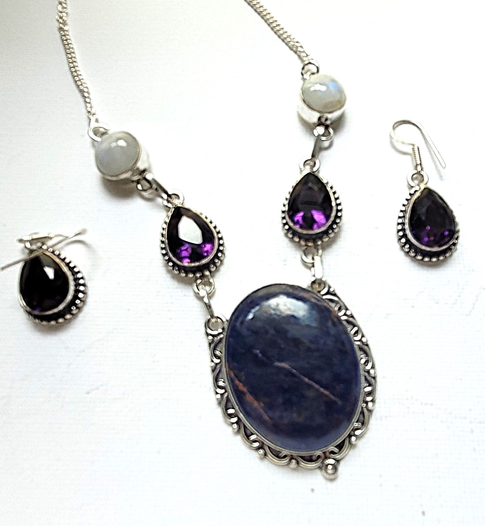 AND MOONSTONE PENDANT AND DROP EARRINGS, ALL STAMPED 925. JEWELERY