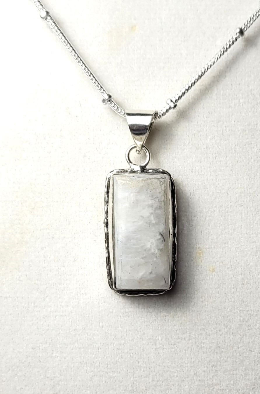 RECTANGULAR MOONSTONE PENDANT ON 18" CHAIN. JEWELERY