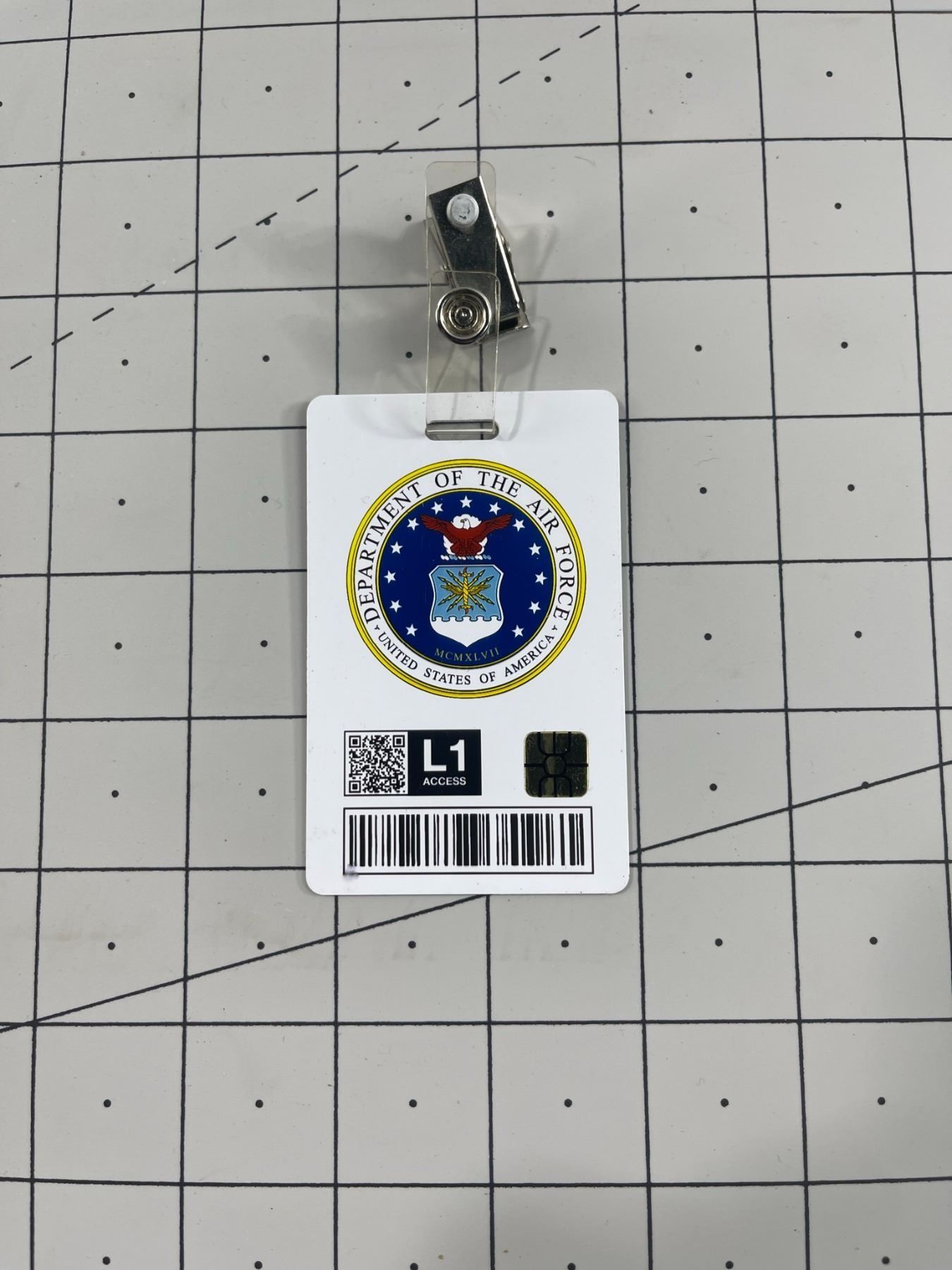 A Air Force L1 Access Security Badge used in production of the Emmy award wining drama, 24. Starring Kiefer Sutherland as agent Jack Bauer, 24 is a series that unfolds in 'read time', showcasing 24 episodes per season, each episode depicting one hour. Badges, like the one pictured, can be easily seen worn by characters in the show.