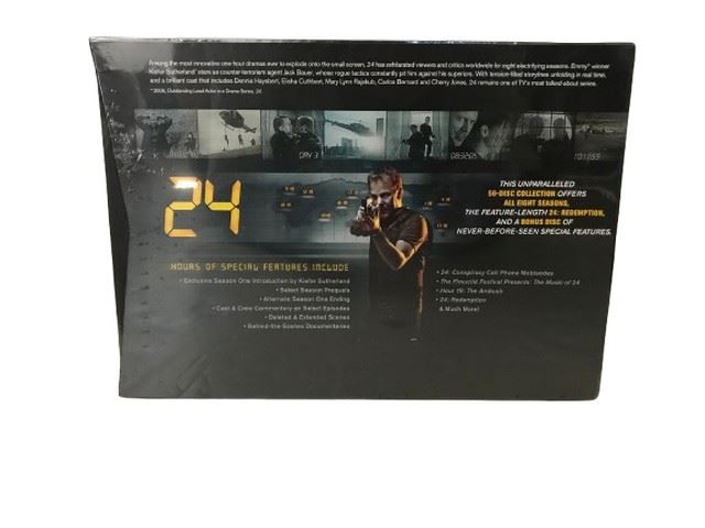 This extensive DVD set features all eight seasons of the critically acclaimed action-thriller series 24. Follow Jack Bauer, an Counter-Terrorist Unit (CTU) agent, as he races against the clock to prevent devastating terrorist attacks.
