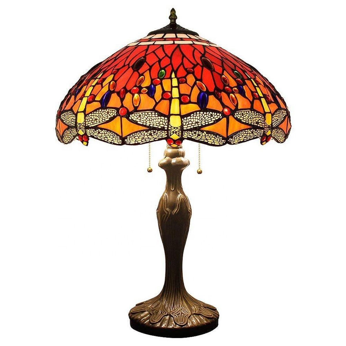 This Dragonfly Tiffany Style 24in. Table Lamp has been handcrafted using methods first developed by Louis Comfort Tiffany. The Two 60-watt standard bulb provides illumination and enhances the beauty of each cut glass to your room. It features an elegant antique bronze finish base and colorful stained glass. Shade contains more than 150 pieces of hand-cut glass wrapped in fine copper foil and accented with rich vibrant cabochons. Bulbs not Included.