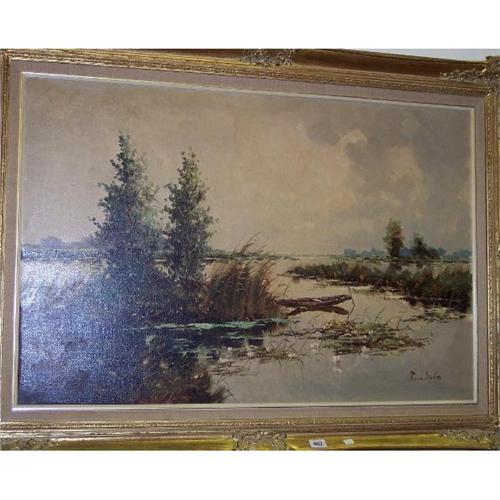 24" X 35½" GILT FRAMED OIL PAINTING ON CANVAS "EVENING LIGHT" BY BOB SALOM
