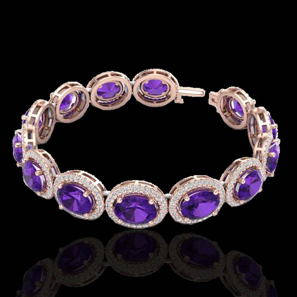 REF-360W2H - SKU: 22678 ---- 24 ctw Amethyst & Micro Pave VS/SI Diamond Bracelet 10k Rose Gold