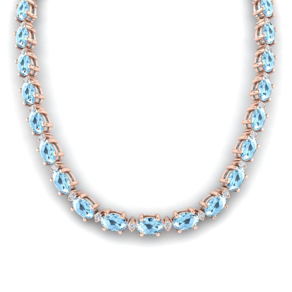 REF-243F5M - SKU: 21583 ---- 24 ctw Aquamarine & VS/SI Diamond Eternity Necklace 10k Rose Gold