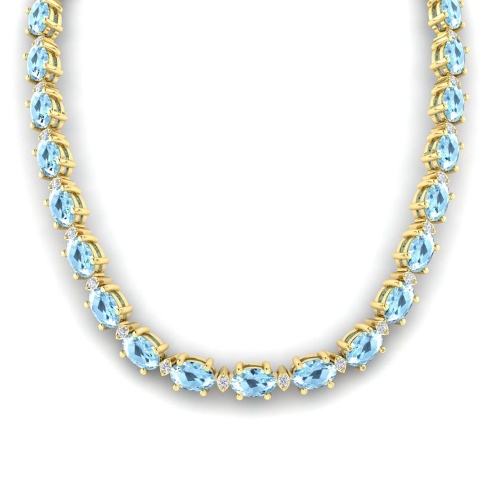 REF-243H5R - SKU: 21585 ---- 24 ctw Aquamarine & VS/SI Diamond Eternity Necklace 10k Yellow Gold