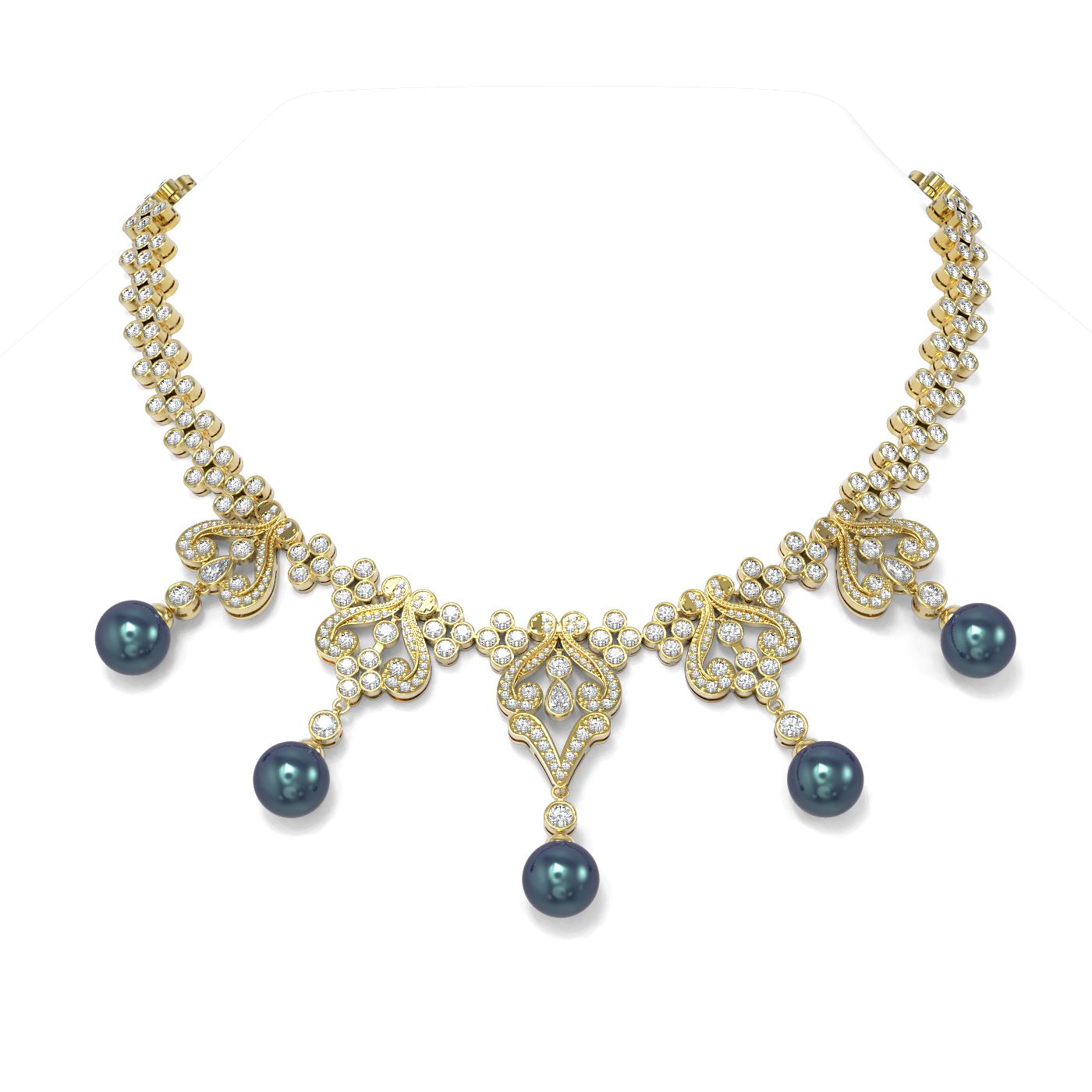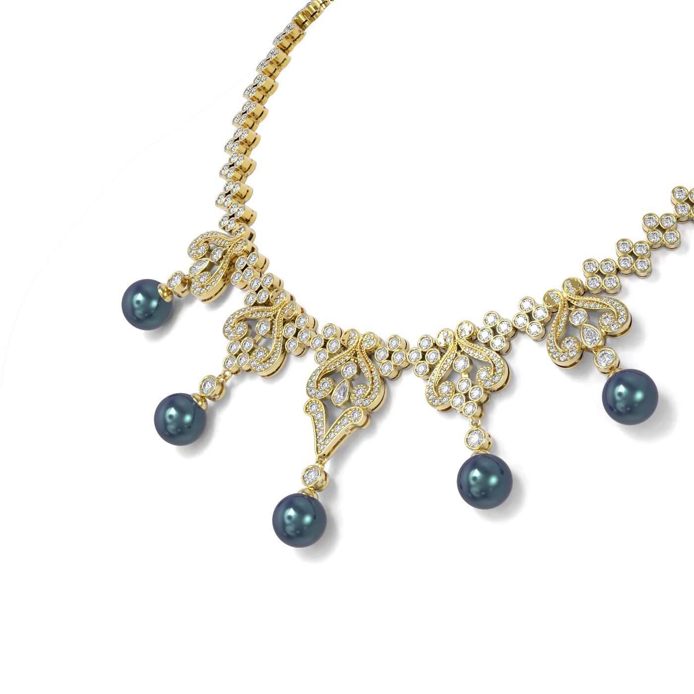 24 ctw Diamond and Pearl Necklace 18K Yellow Gold