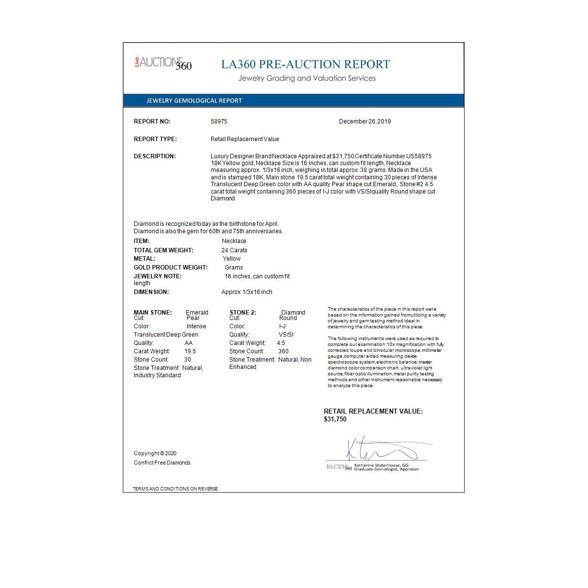 REF-722M2G - SKU: 58975 ---- 24 ctw Emerald & Diamond Necklace 18K Yellow Gold