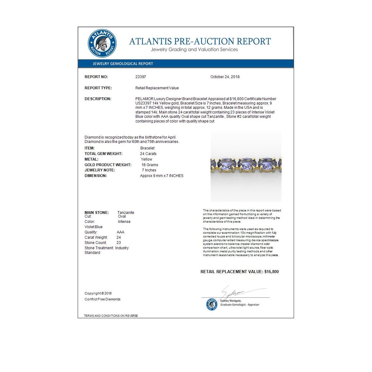 Bidders agree to pay a 19% buyer's premium added to the hammer price of the lot being auctioned. Condition reports and/or Gemological reports in Auction catalog are not guaranteed and may vary in accuracy. It is the responsibility of prospective bidders to inspect the goods. All reports, measurements, opinion of values, age and quality are offered by Oxford Auction but are not guaranteed. Neither the auction house, nor the consignor, is responsible for the accuracy of printed or verbal descriptions or its authenticity. All jewelry items sold by Oxford Auction are evaluated by third party appraisal firms where certified GIA gemologists evaluate the weight, size and grade of gemstone and/or metal to determine the replacement value of the item. Please be advised that all appraisals are done for insurance purposes only and do not determine the actual value of the jewelry on auction. The appraisals are done for the sole purpose of protecting the buyer in the event of damage or loss of purchased jewelry items from Oxford Auction. Oxford Auction is not responsible for the opinions and appraisals of any third party appraisal firms and their experts.