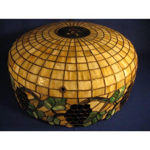24" wide x 10 ½" Tiffany style stained lamp shade WE DON'T KNOW THE AGE OF THIS SHADE BUT IT IS NOT NEW....6 OR LESS SMALL PANELS HAVE FLAWS OR CRACKS....THANKS DAN 10/10/08