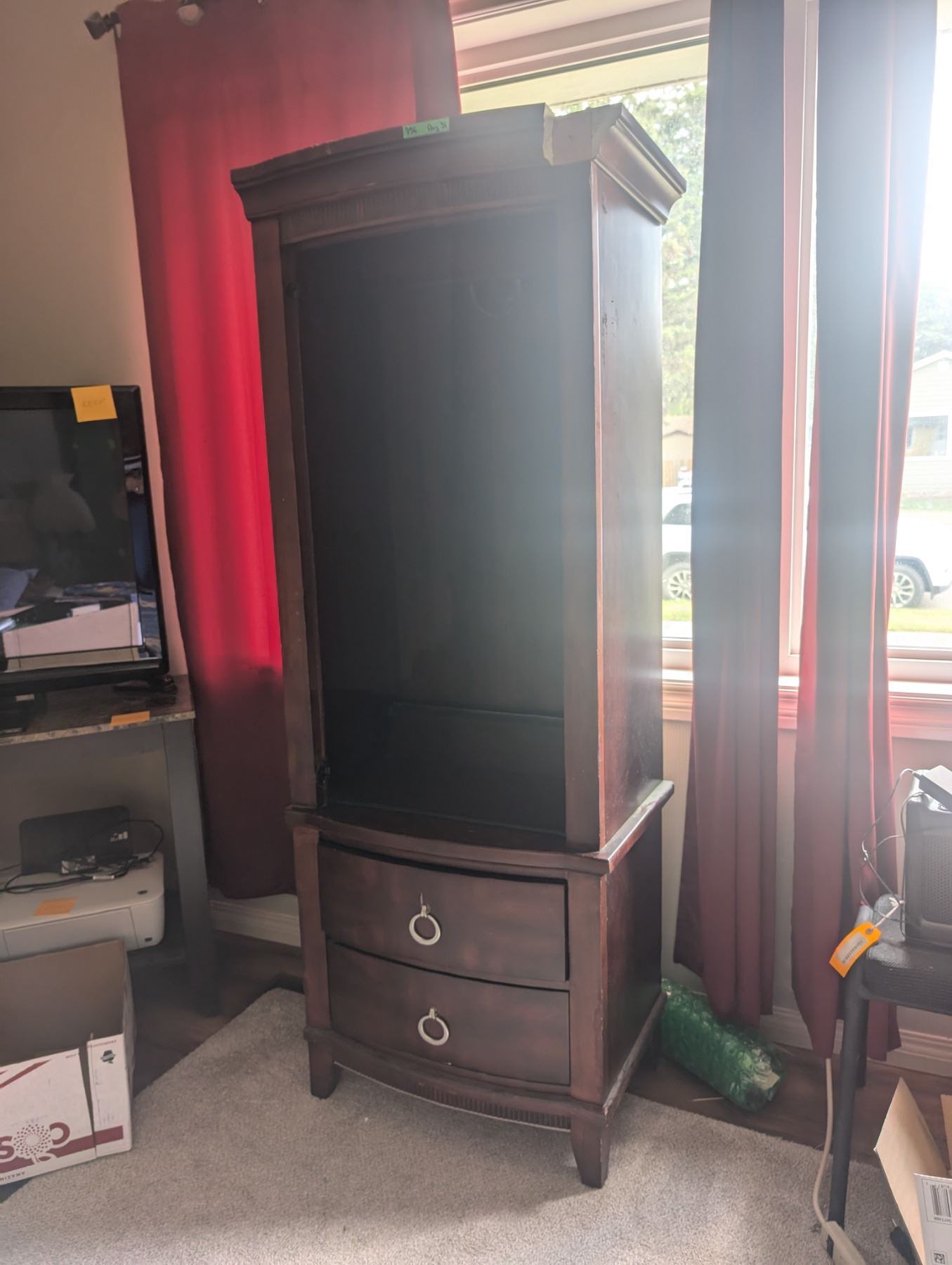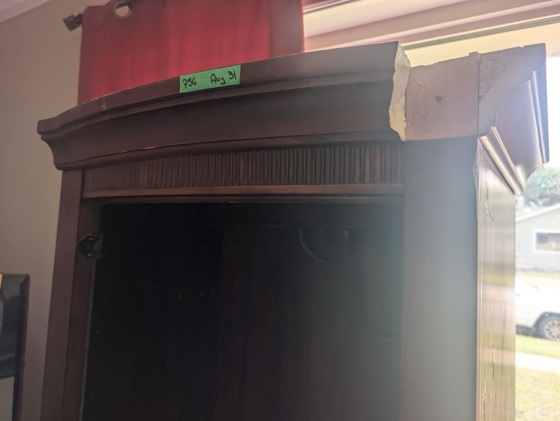 24" wide x 15" Deep x 68" Curio Cabinet two Glass Shelfs included (front right corner of crown molding is missing)