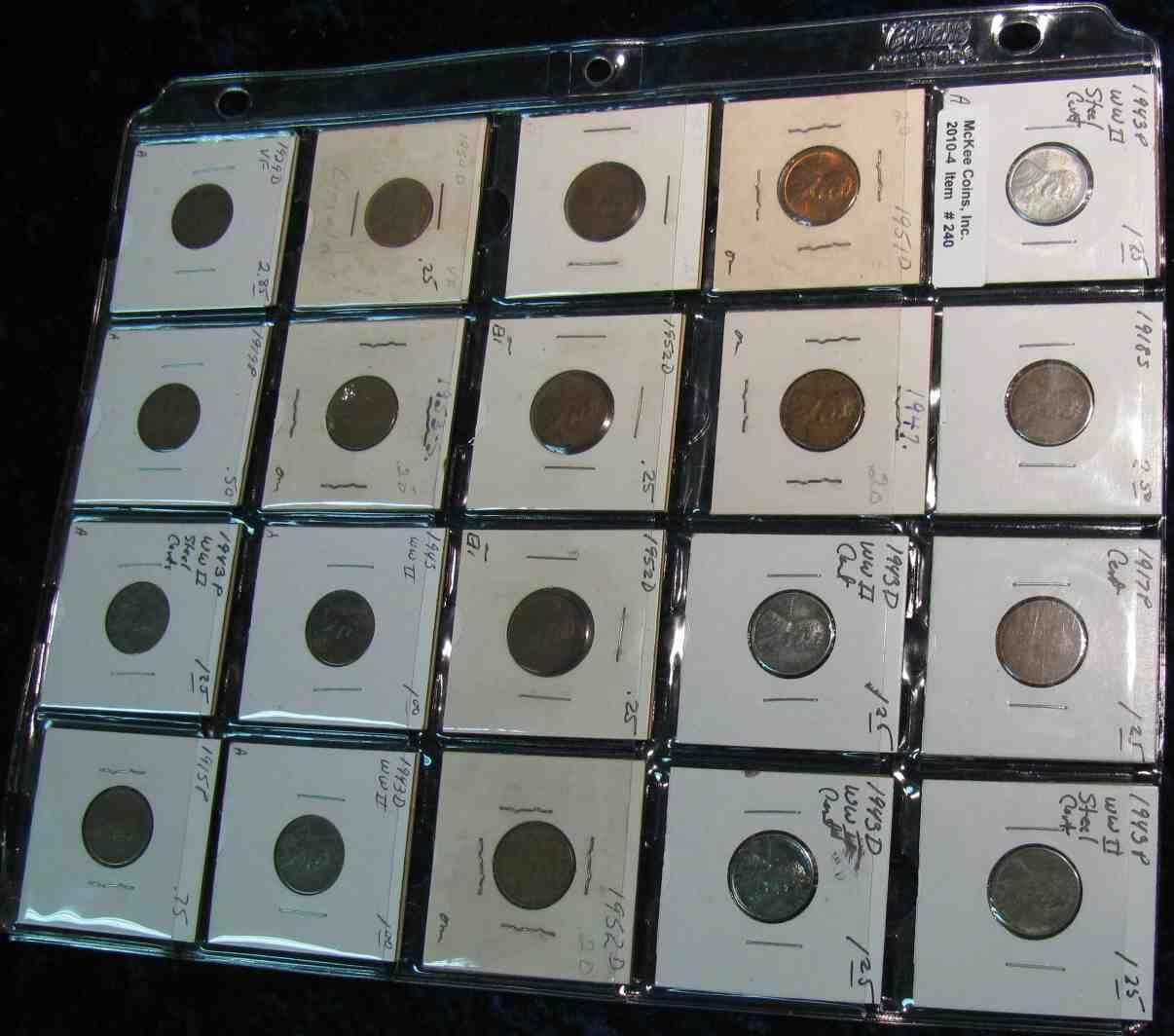 240 Dealer 20 Pocket Stock page with old Wheat Cents dating back to 1915.