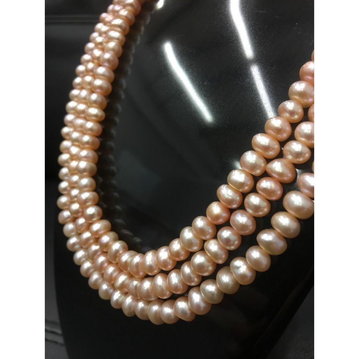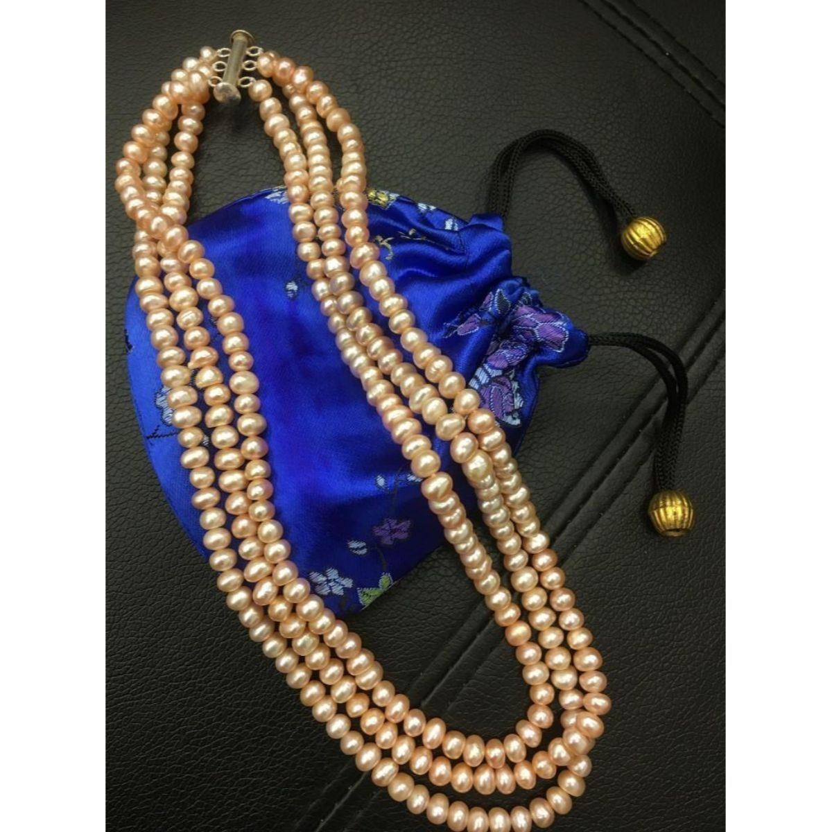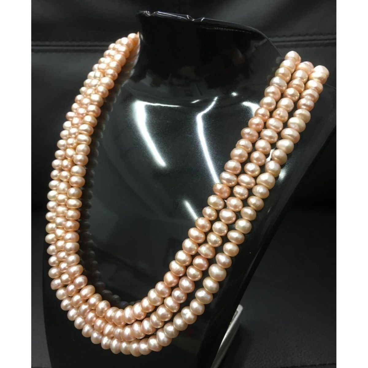 240+ Pearls Triple Strand Akoya Pink Pearl Necklace With S925 Custom Clasp Pink pearls represent energy, success, fame, romance, and good fortune. They are soft and romantic in color. Pink pearls make for great graduation gifts because of their promise for the future. Clasp : Silver S925 Custom Loop Design Pink Pearls : 240+ Length : 17 1/2 inches x 3 Strands View Photos For Further Details.