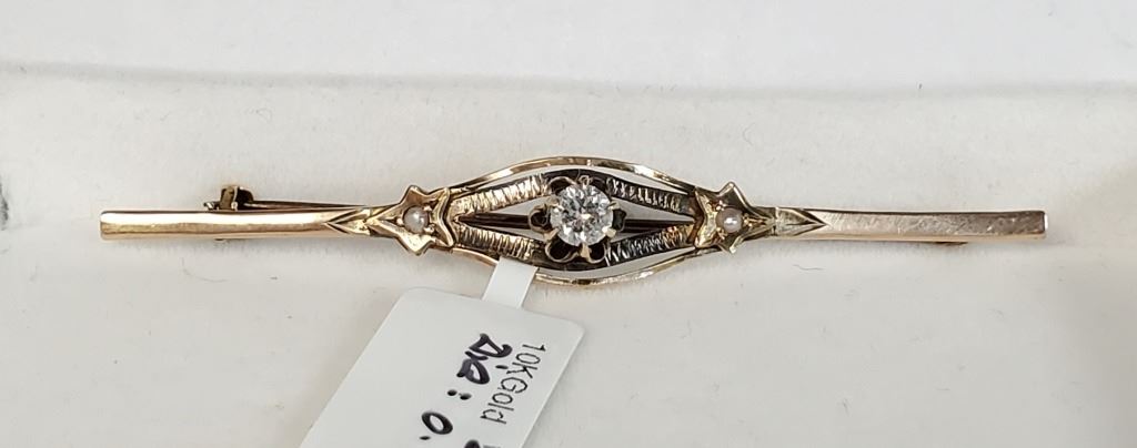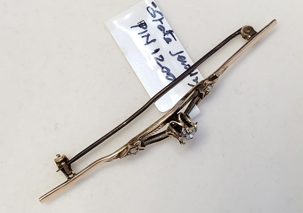 10K Yellow Gold Diamond(0.2ct) Estate Jewellery Pin (~weight 2.3g), Suggested Retail Value $2400