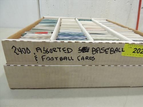 2400 1990S ASSORTED BASEBALL & FOOTBALL CARDS. MIX OF MAKERS. AS SHOWN. VIEW PICTURE FOR DETAIL.