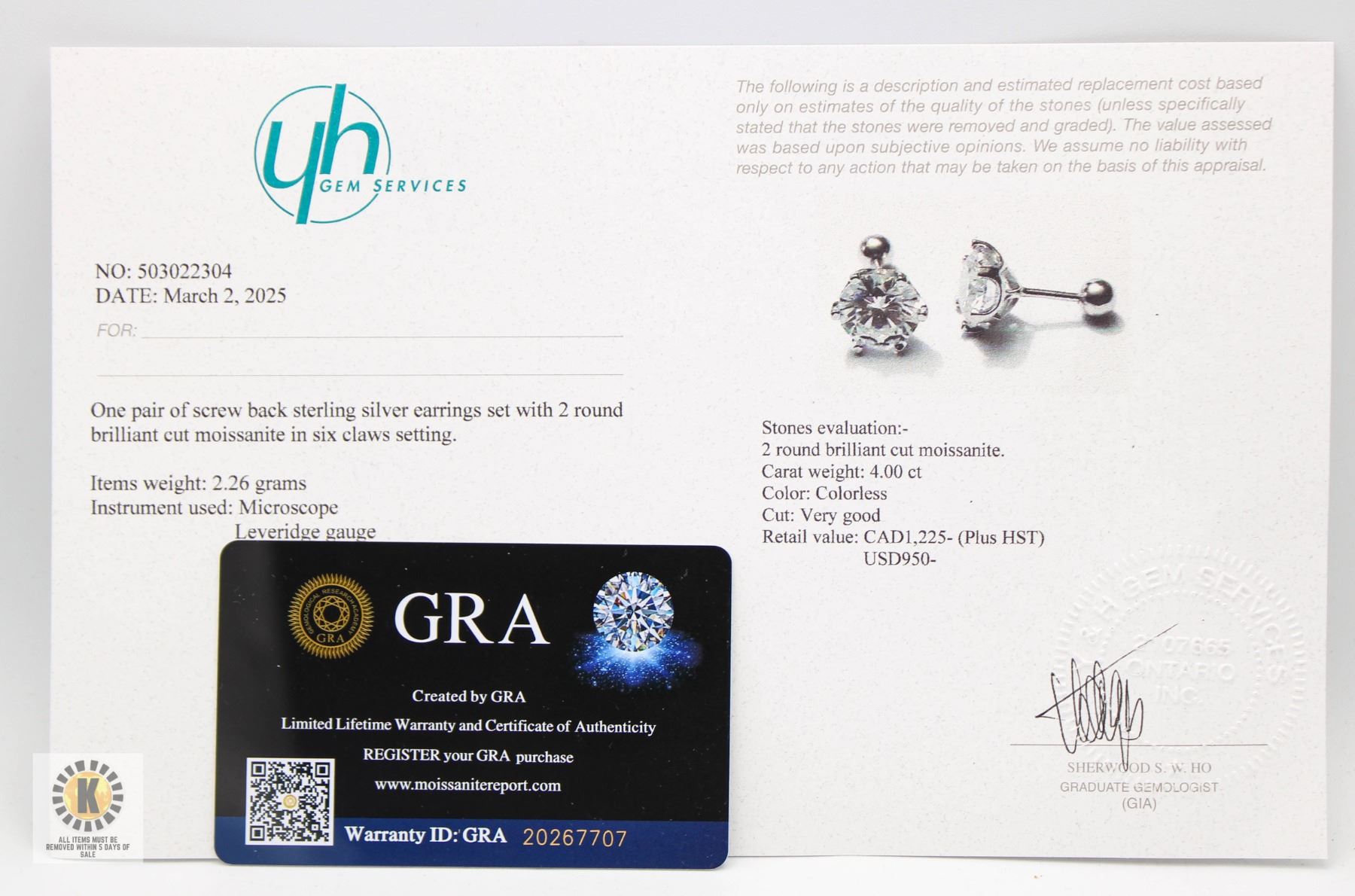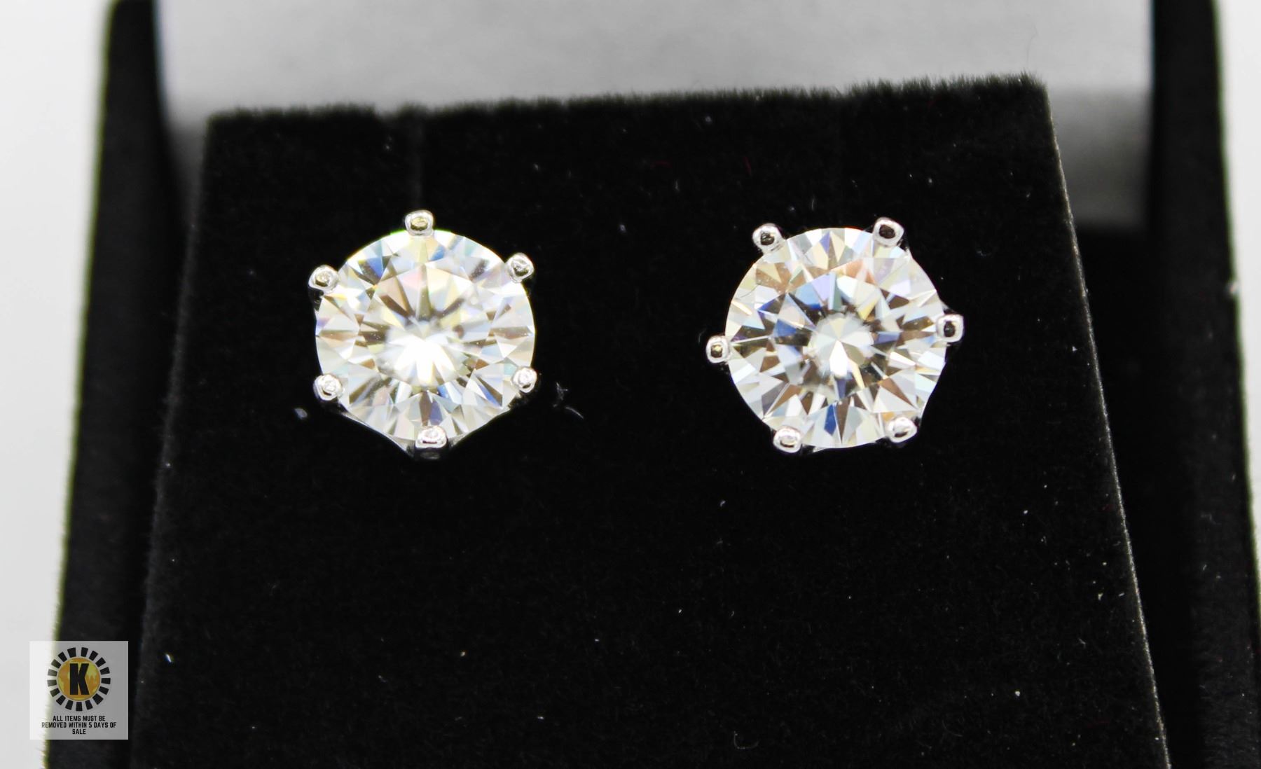 MOISSANITE STONES VVS D COLOR SET IN 4 CLAW FILAGREE BASKET HEAD SET IN 925 SILVER EARRINGS WITH SCREW BACKS RETAIL VALUE $1,225.00 **ALL ITEMS MUST BE REMOVED BY 5PM SATURDAY, APRIL 5TH 2025. ALL REMAINING ITEMS WILL BE SUBJECT TO A $6.00 PER DAY STORAGE CHARGE. ANY ITEMS REMAINING AFTER MONDAY, APRIL 21ST 2025 WILL BE CONSIDERED FORFEITED. NO REFUNDS WILL BE ISSUED FOR FORFEITED ITEMS. TO SCHEDULE A PICK UP APPOINTMENT CLICK HERE