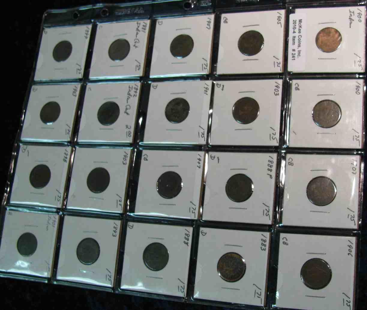 241. Dealer 20 Pocket Stock page with old Indian Head Cents dating back to 1881.
