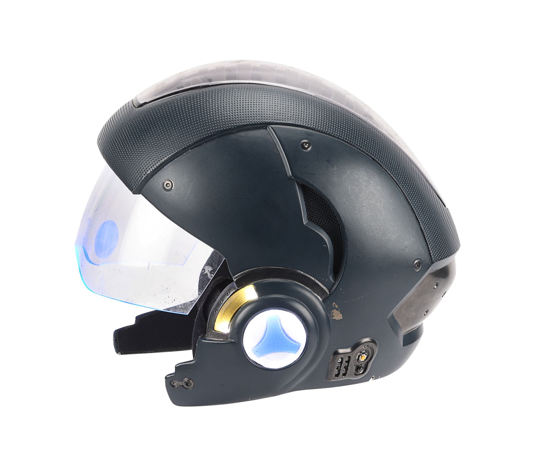 MINORITY REPORT (2002) - Light-Up PreCrime Cop Helmet with Retractable Visor - A light-up PreCrime cop helmet with a retractable visor from Steven Spielberg's sci-fi action film Minority Report.