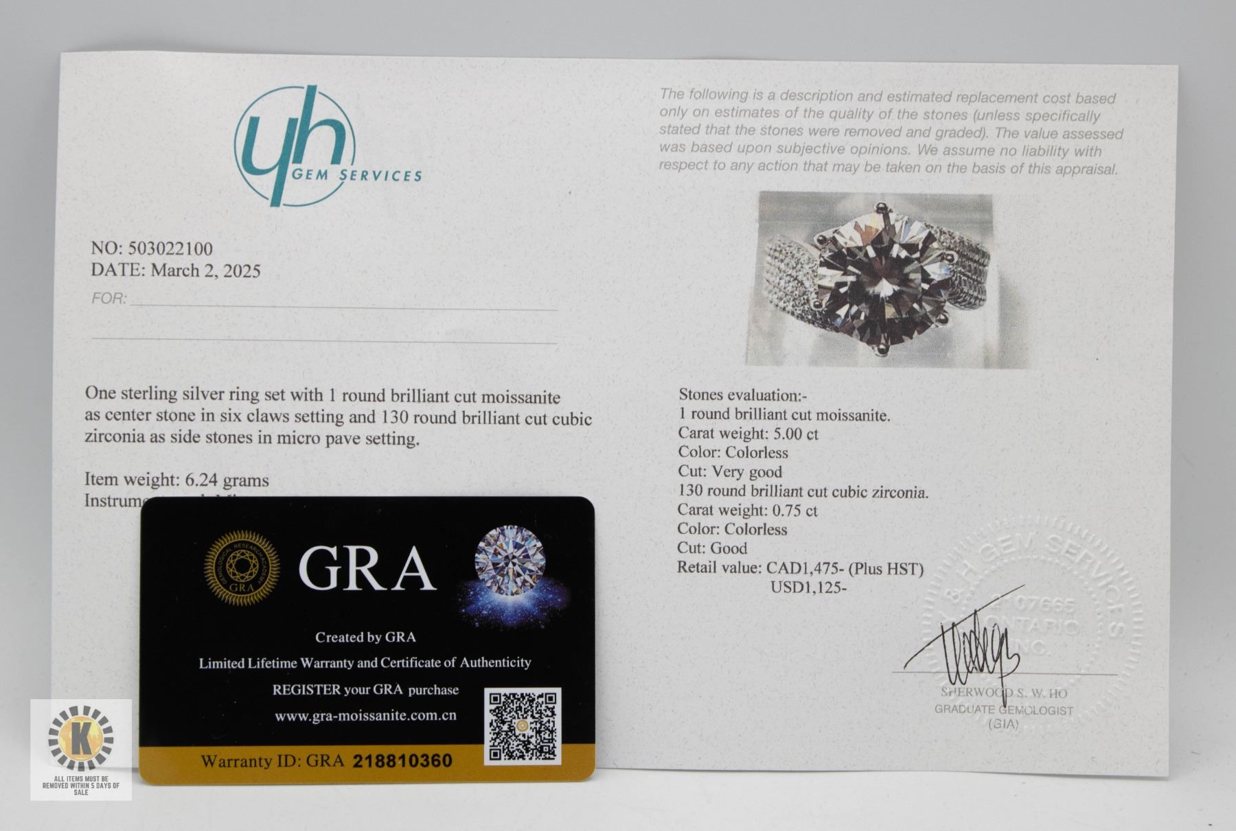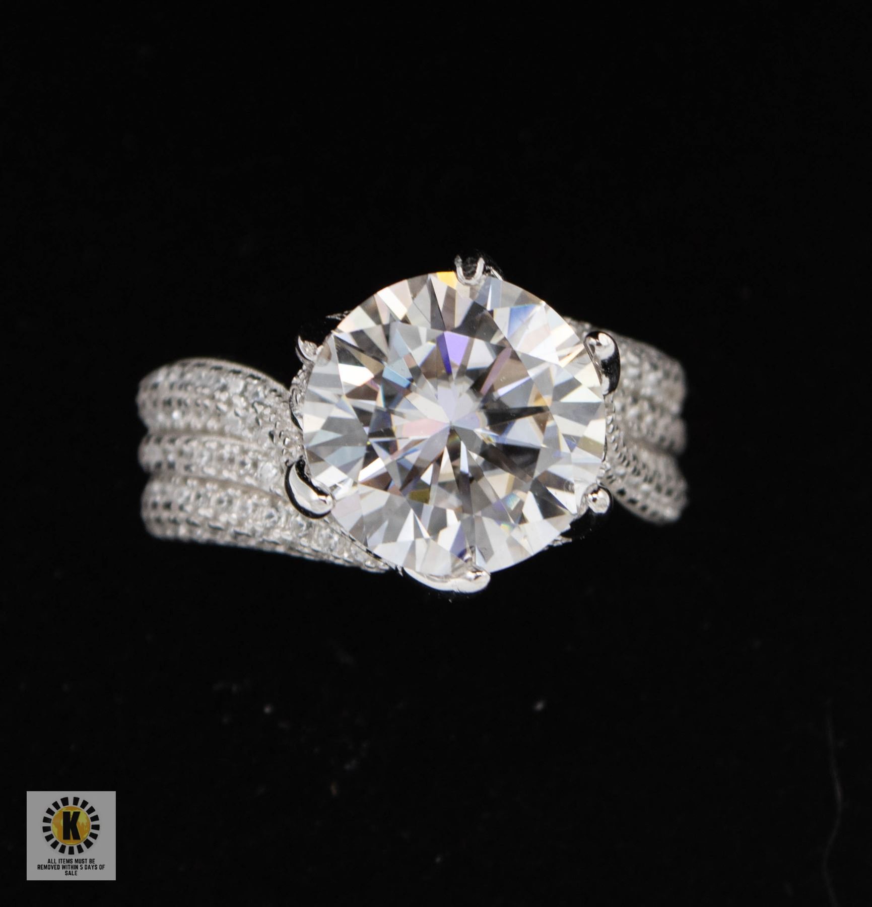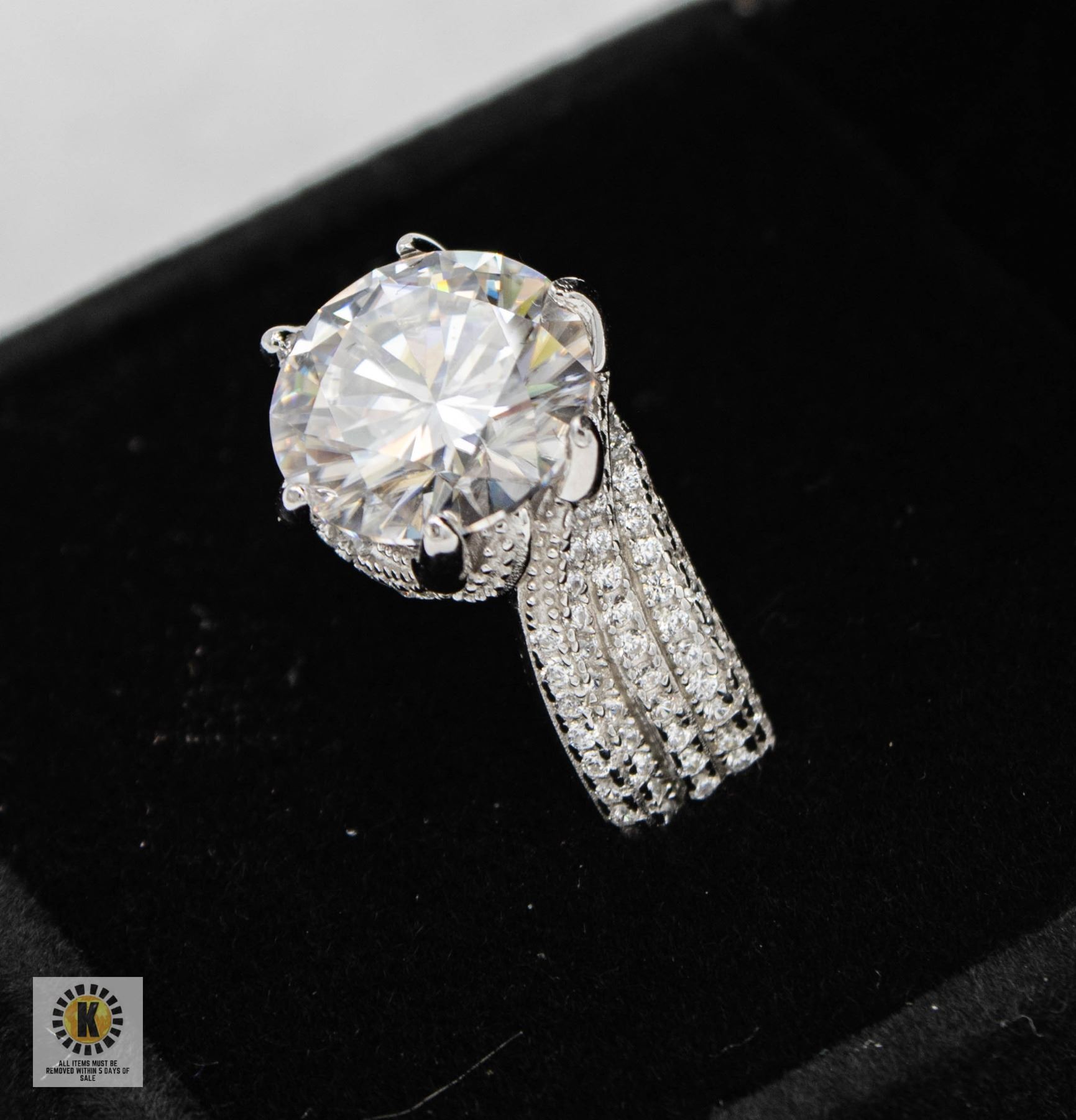 MOISSANITE STONE VVS D COLOR SET WITH 130 ROUND BRILLIANT CUT CZS SET IN 925 SILVER RING SIZE 7 RETAIL VALUE $1,475.00 **ALL ITEMS MUST BE REMOVED BY 5PM SATURDAY, APRIL 12TH 2025. ALL REMAINING ITEMS WILL BE SUBJECT TO A $6.00 PER DAY STORAGE CHARGE. ANY ITEMS REMAINING AFTER MONDAY, APRIL 28TH 2025 WILL BE CONSIDERED FORFEITED. NO REFUNDS WILL BE ISSUED FOR FORFEITED ITEMS. TO SCHEDULE A PICK UP APPOINTMENT CLICK HERE