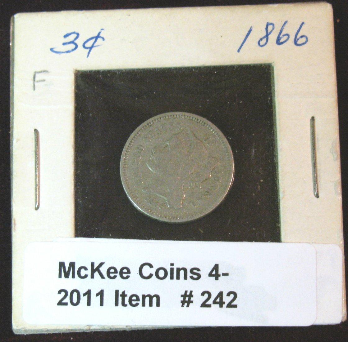 242. 1866 Three Cent Nickel. F-12.