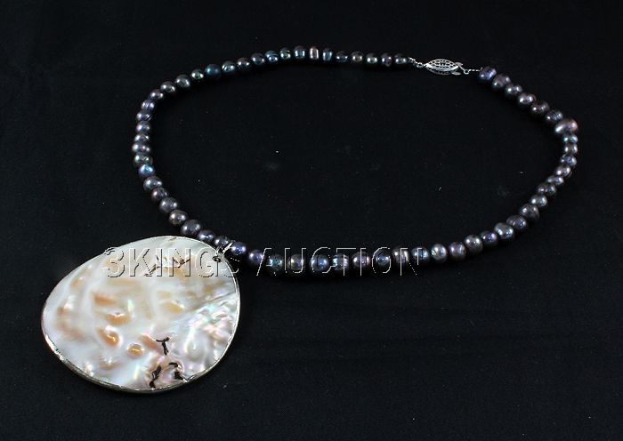 242.46CTW 18" BLACK FRESHWATER CAPIZ PENDANT/MOTHER OF **|**|** 242.46CTW 18" BLACK FRESHWATER CAPIZ PENDANT/MOTHER OF PEARL NECKLACE METAL LOCK PHILIPPINES ; MSRP: $200