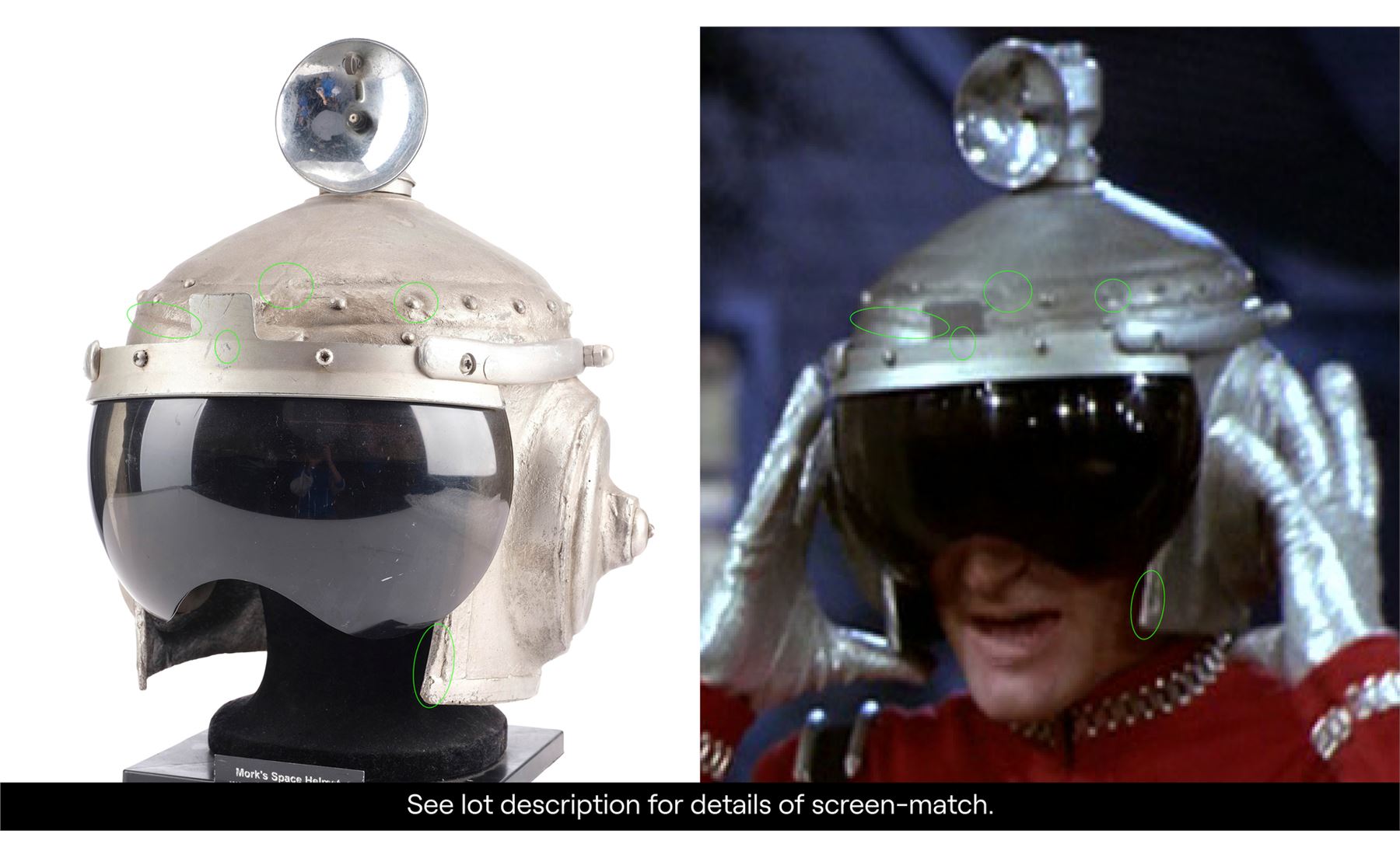 MORK & MINDY (T.V. SERIES, 1978 - 1982)/THE OUTER LIMITS (T.V. SERIES, 1963 - 1965) - Mork's (Robin Williams) Screen-Matched Helmet - Mork's (Robin Williams) screen-matched helmet from the television series Mork and Mindy. Mork wore his helmet as he landed on Earth from Ork in his egg-shaped spaceship and later wore it during a visit to Arthur "Fonzie" Fonzarelli's (Henry Winkler) house in the pilot episode.