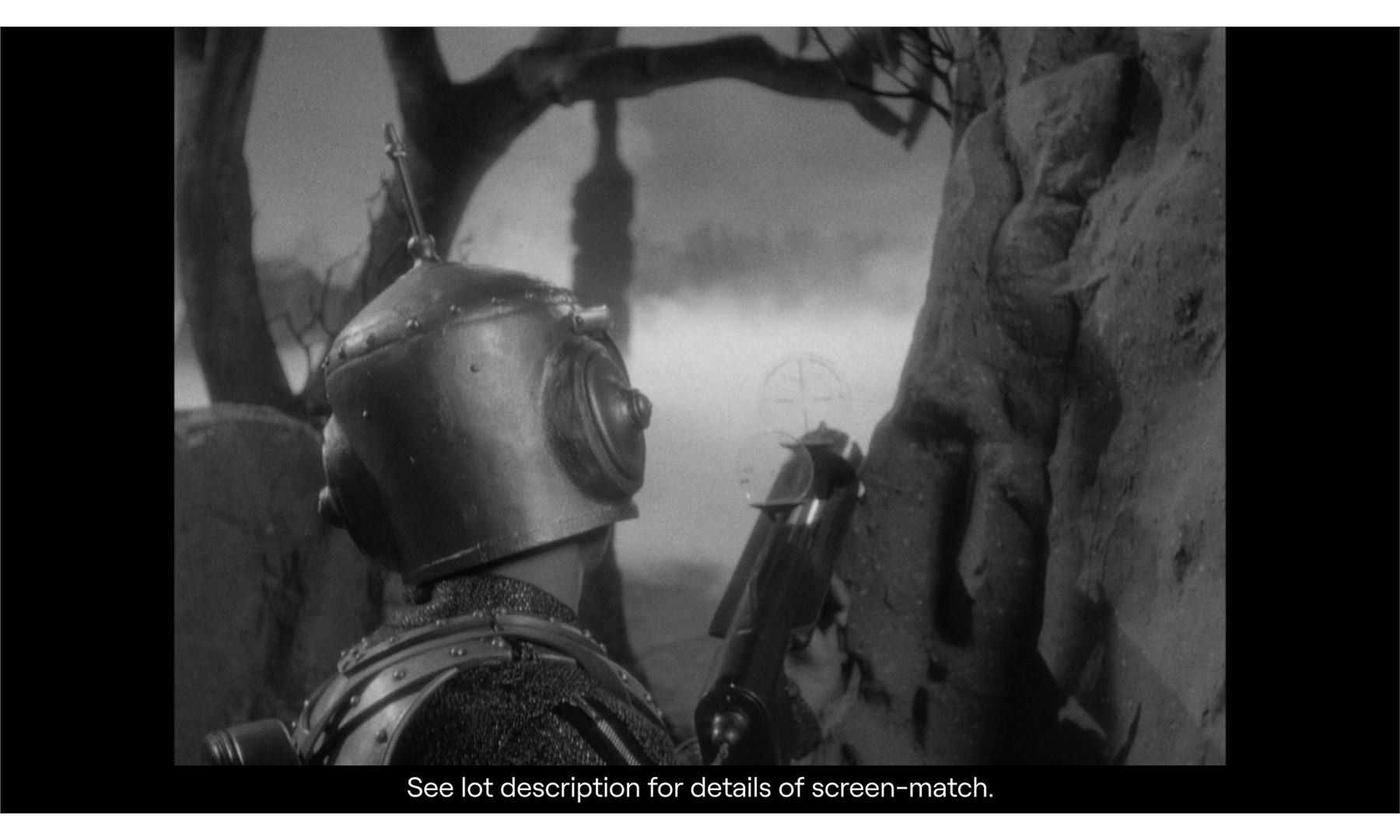 7.3. In the catalog descriptions, Propstore takes steps to identify and provide provenance for Lots offered at Auction. In many cases, the Lots offered were used in or in conjunction with motion pictures or other programs and information is furnished in order to fully identify and describe the Lot offered at Auction, including photographs and illustrations. Propstore in no way claims any connection to or relationship with the producers of the motion picture or other program. In all cases, the use of the titles or other elements of a motion picture or other program is for informational purposes only.