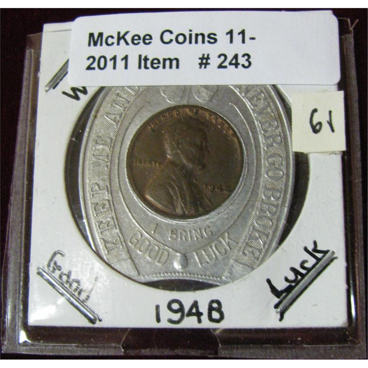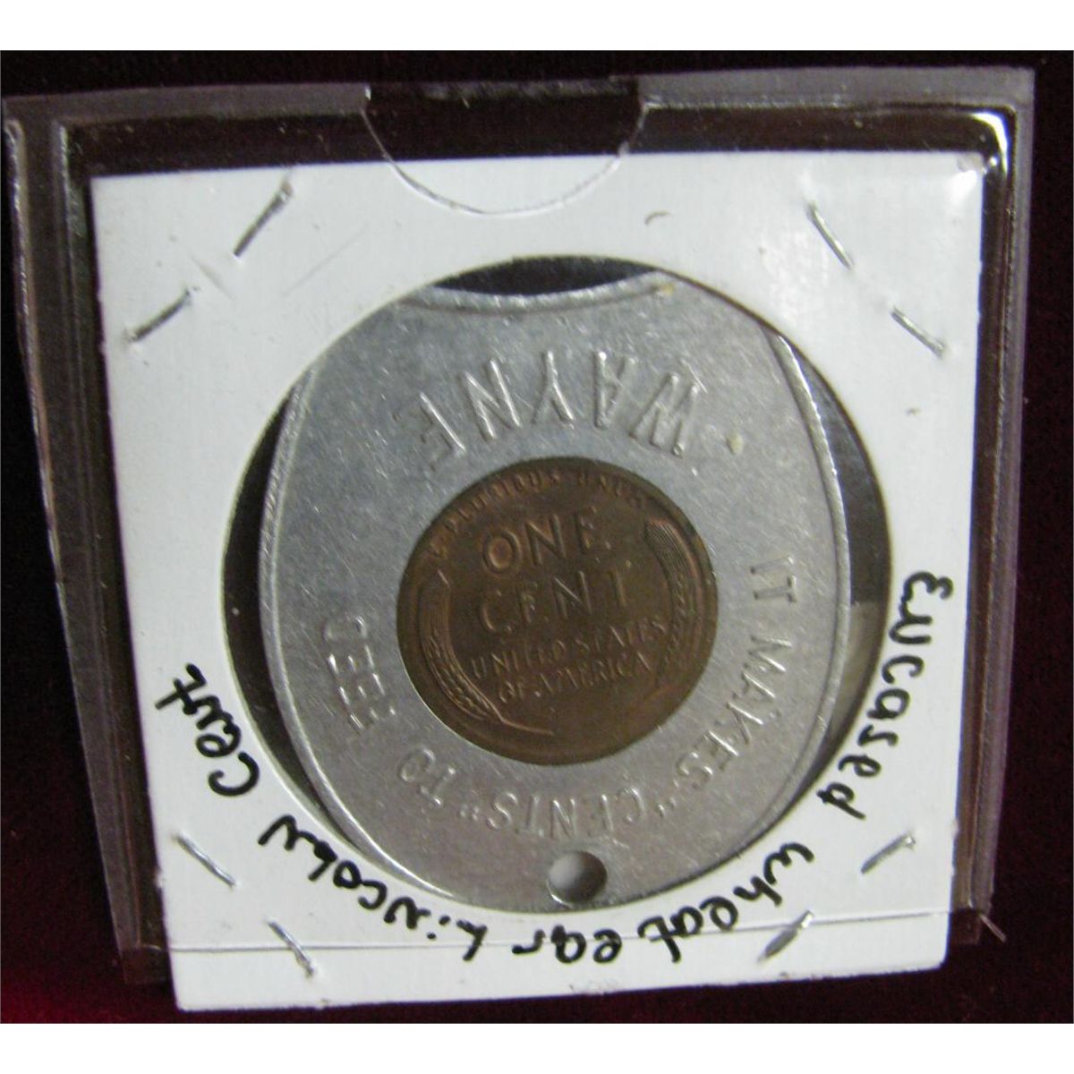 243. 1948 Wayne Feeds Good Luck Encased Cent. "It Makes "Cents" to Feed Wayne"