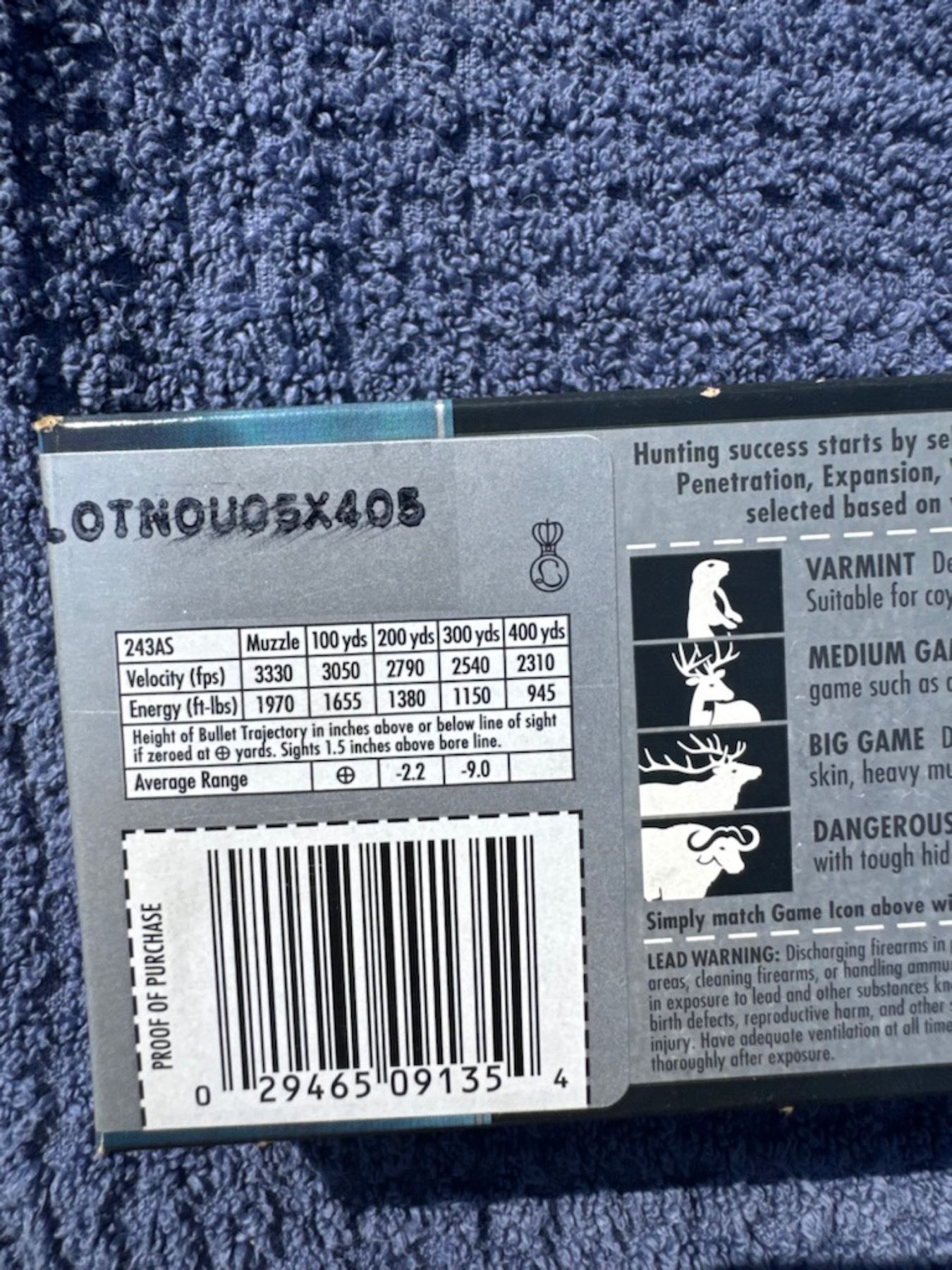 243 WIN WINCHESTER AND 243 FEDERAL POWER-SHOCKS (INTERNAL REFERENCE: L)