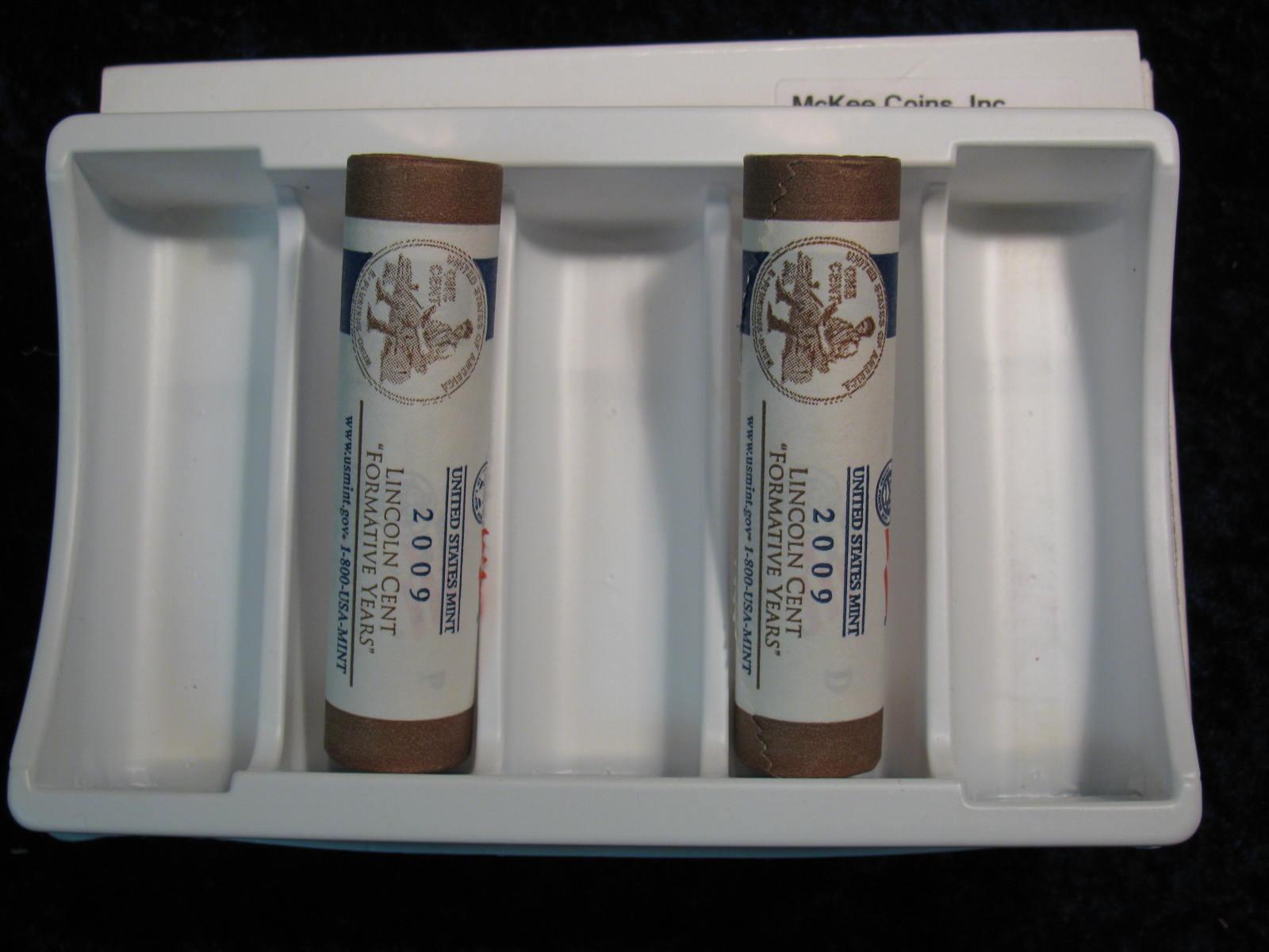 2435. 2009 U.S. Mint Lincoln Cent 2 Roll Set "Log Cabin" Original As Issued.