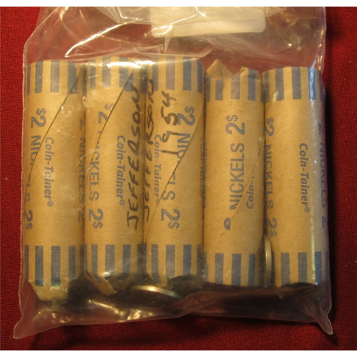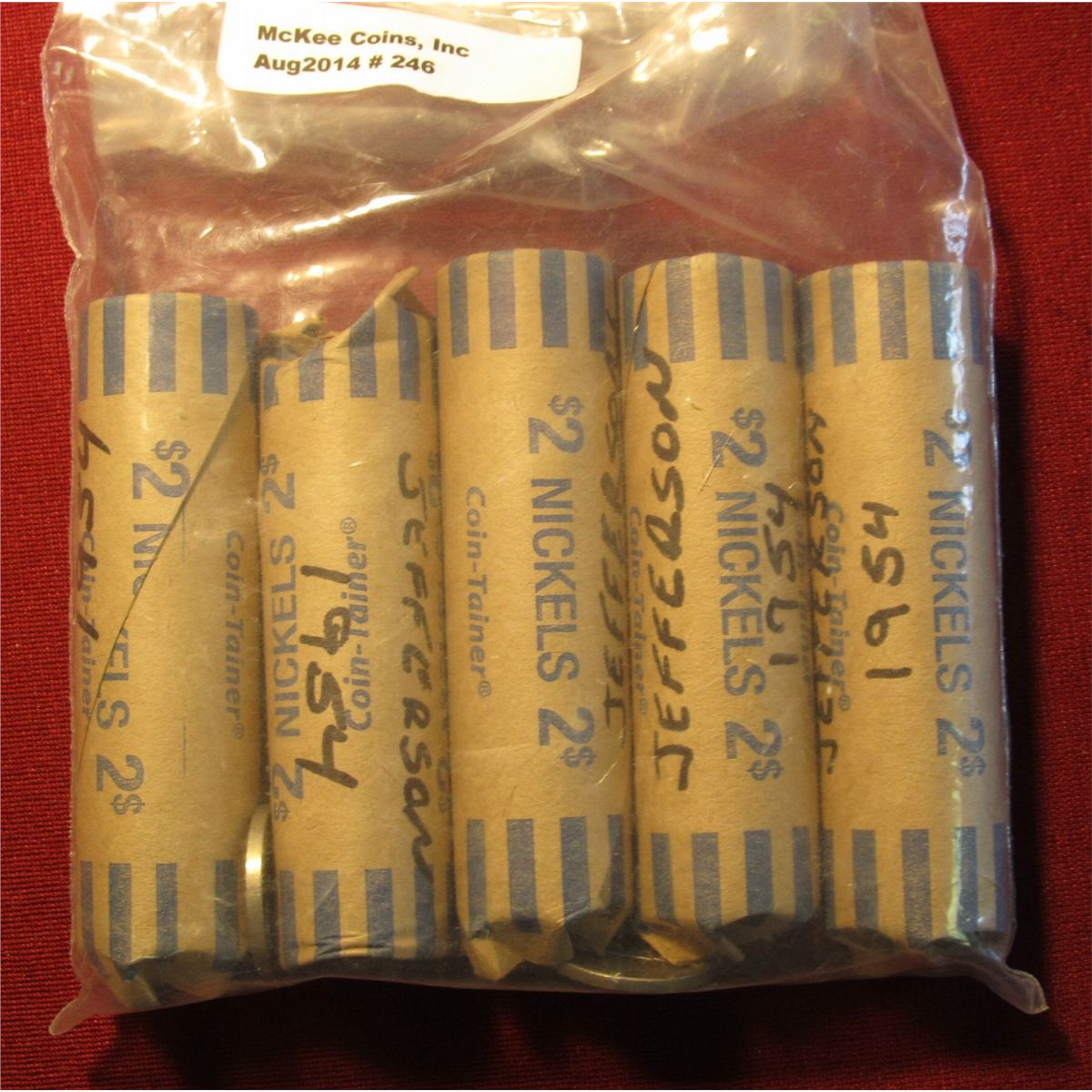 246. (5) Circulated Rolls Of 1954 P Jefferson Nickels. Scarcer Date.