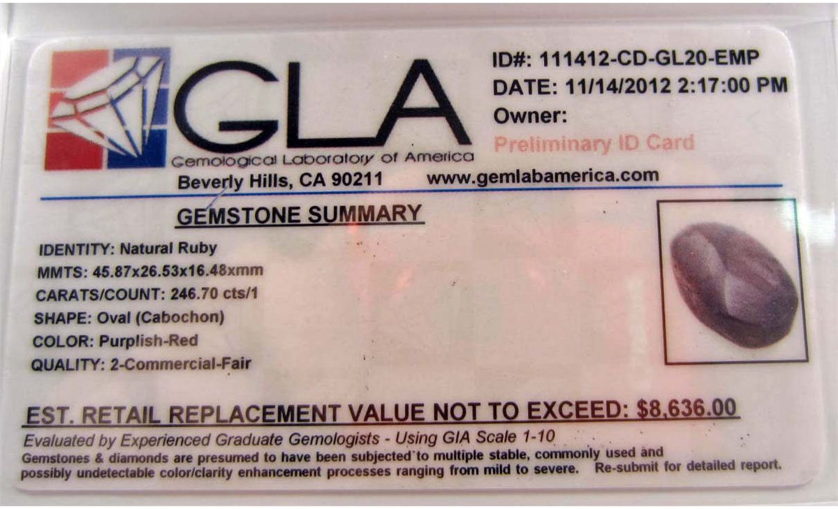 Comes w/ GLA Appraisal of $8,636.00. 46.87 by 2.53 by 16.48 mm