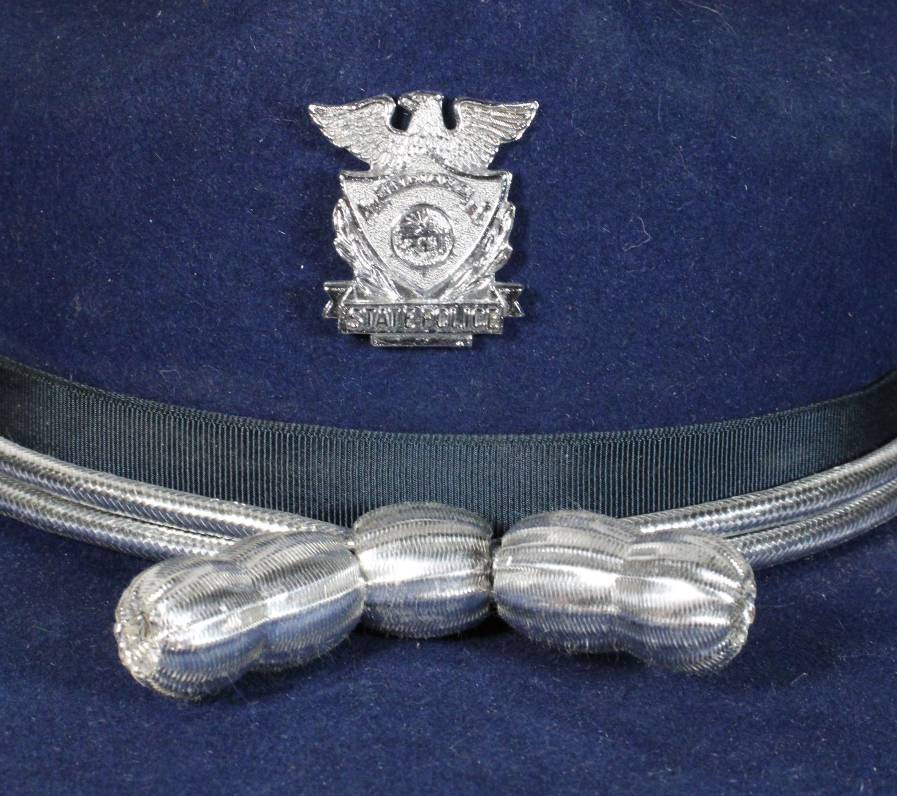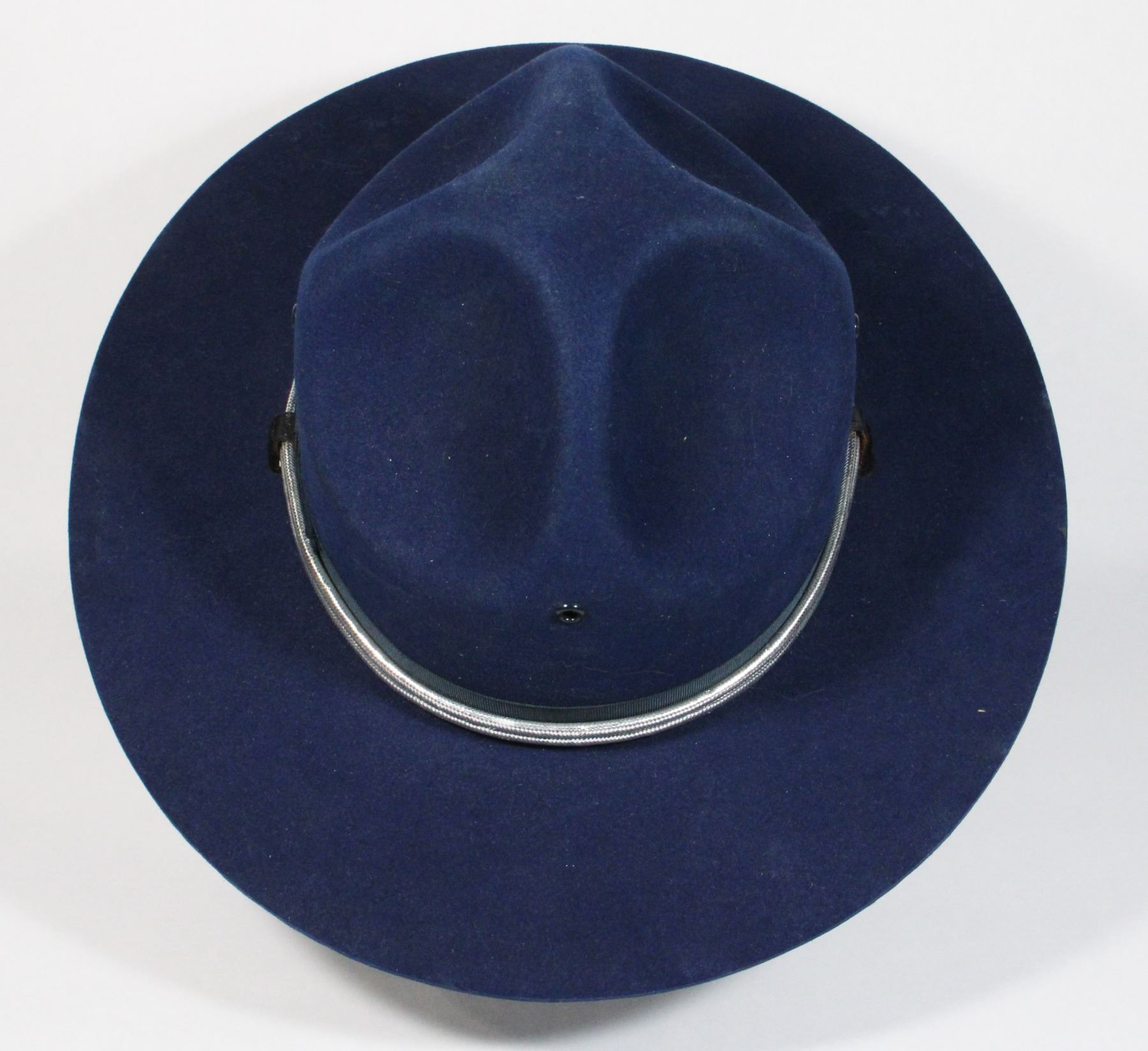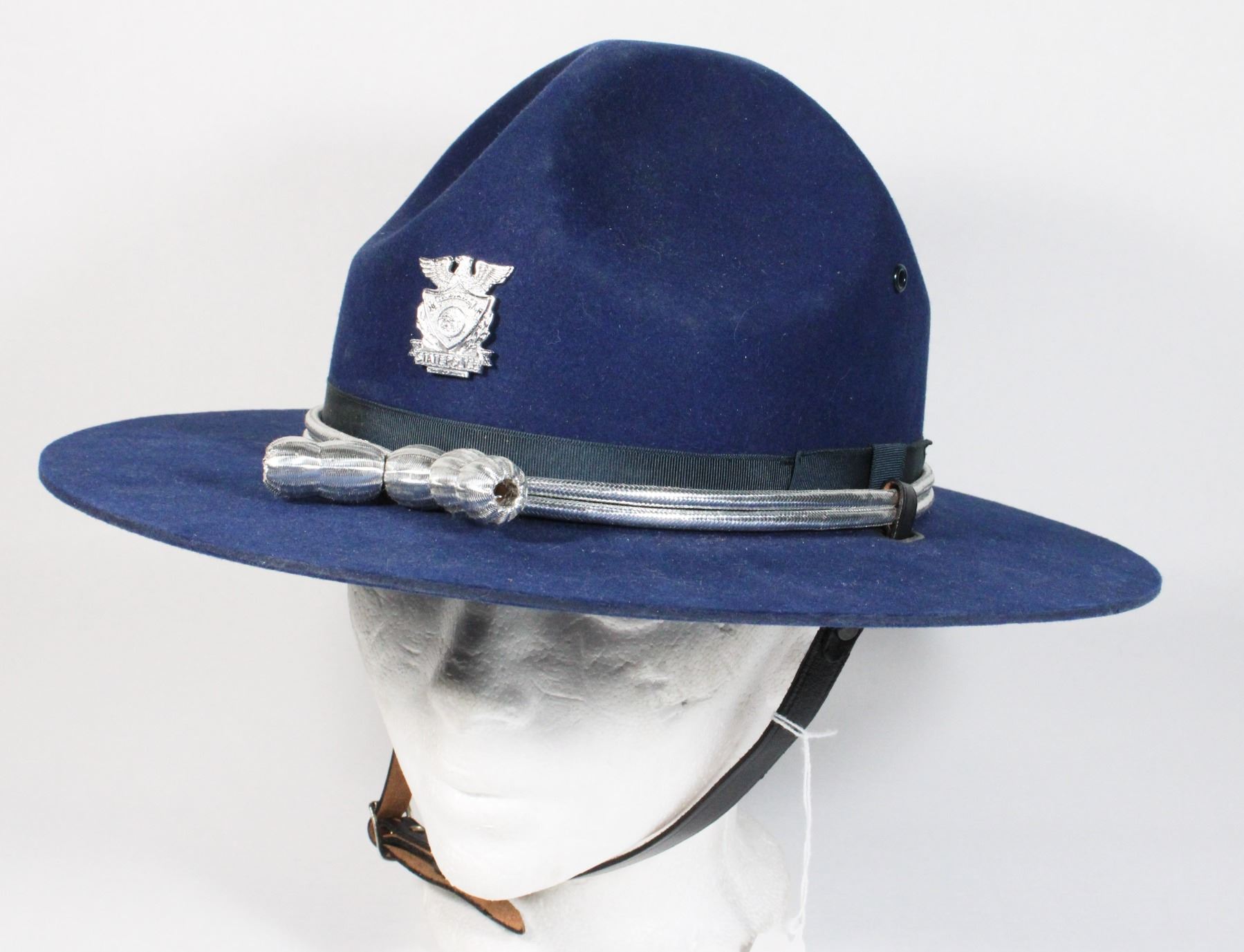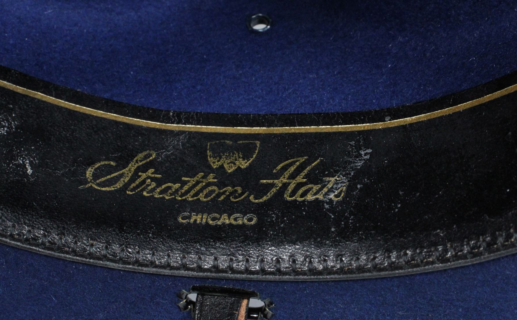 BY STRATTON HATS CHICAGO, BLUE HAT WITH BADGE, SIZE 6 7/8